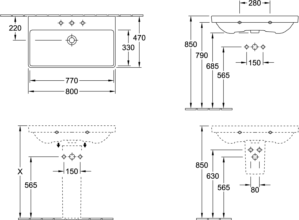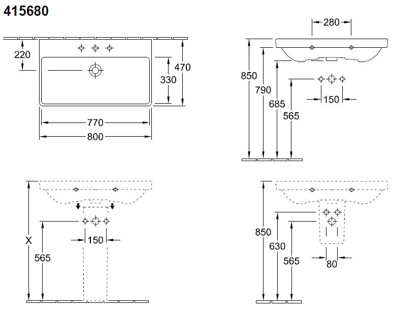 Villeroy & Boch Avento meubelwastafel 80x47cm 1 kraangat met overloop wit