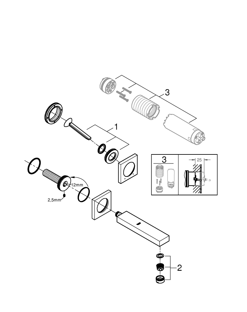 GROHE Eurocube Joy waterbesparende afbouwdeel voor inbouw wandkraan M size met sprong 17.1cm chroom