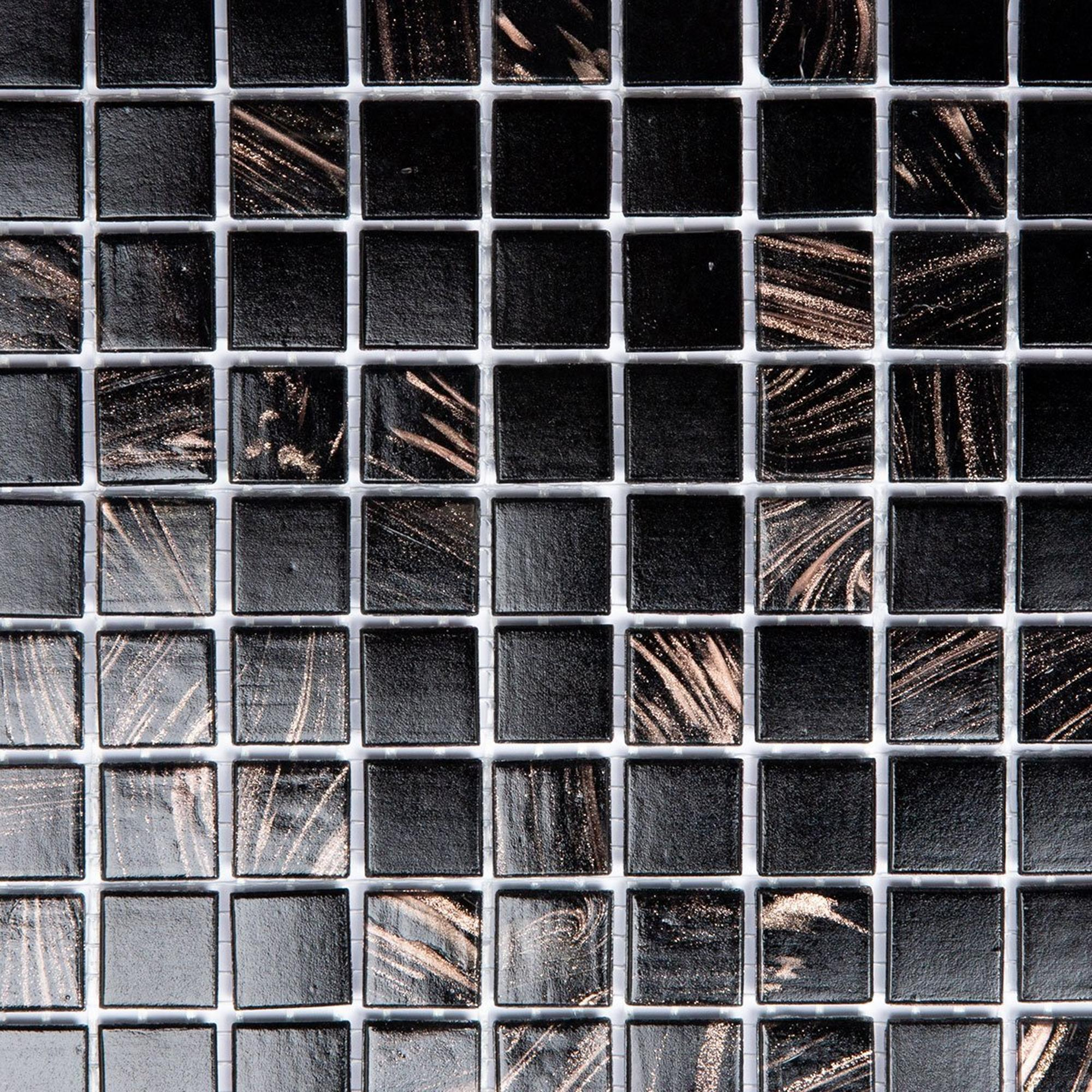 Met zijn vierkante vorm en glanzende afwerking voegt deze mozaïektegel een vleugje elegantie toe aan elke ruimte. De subtiele glinstering van het glas in zwart en goud zorgt voor een speels en toch verfijnd effect. Of je nu een accentmuur wilt creëren of een hele vloer wilt bedekken, deze tegel brengt een gevoel van luxe en klasse met zich mee.
