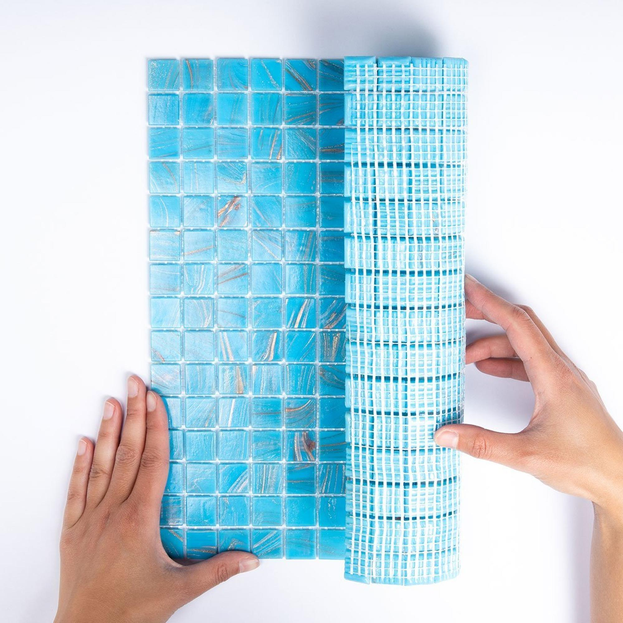 Deze mozaïektegel straalt stijl en klasse uit dankzij zijn unieke ontwerp en glanzende afwerking. Het lichtblauwe glas zorgt voor een frisse en moderne uitstraling die perfect past bij zowel eigentijdse als klassieke interieurs. De tegel is veelzijdig en kan worden gebruikt om accentmuren te creëren of een vloer te transformeren tot een kunstwerk van mozaïek. Met deze tegel voeg je moeiteloos een vleugje luxe toe aan elke ruimte.