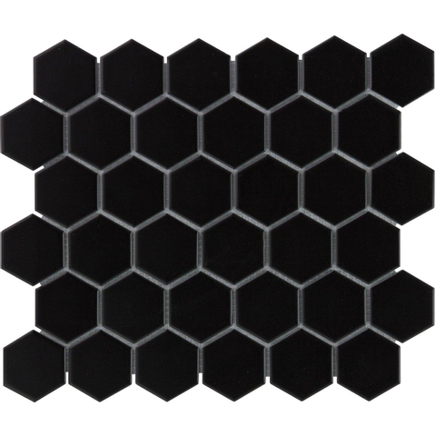 De Mosaic Factory Barcelona mozaïektegel in Zeshoek/Hexagon vorm en Porselein Black Mat afwerking is een prachtige toevoeging aan elke badkamer of keuken. Met zijn afmetingen van 28.2x32.1cm straalt deze tegel elegantie en stijl uit. Het matte zwarte oppervlak voegt een moderne en luxe uitstraling toe aan de ruimte, terwijl de zeshoekige vorm zorgt voor een uniek en eigentijds ontwerp. Of je nu een accentmuur wilt creëren of een vloer wilt bekleden, deze mozaïektegel zal zeker de aandacht trekken en een statement maken.