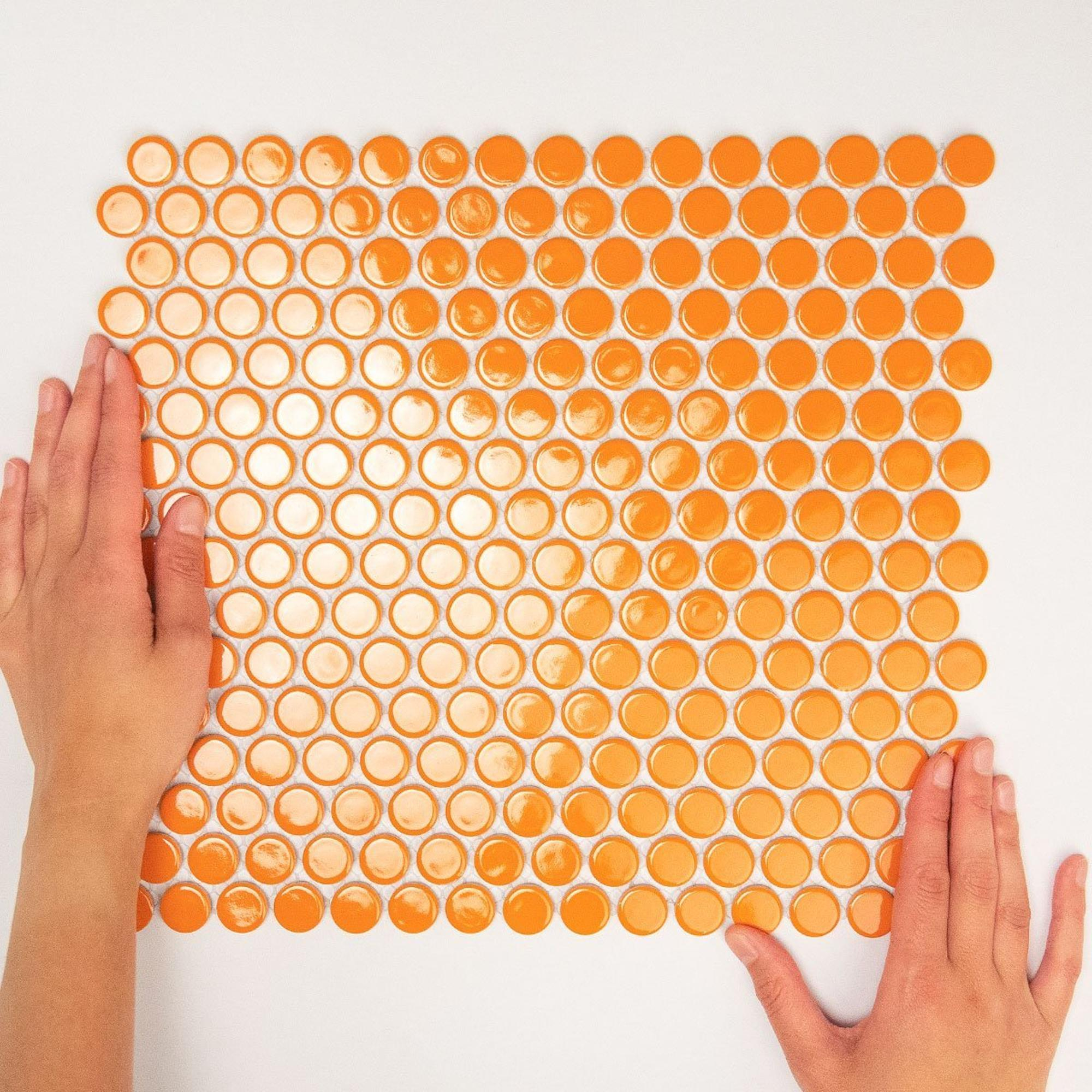 De Mosaic Factory Venice mozaïektegel straalt een onmiskenbare stijl uit. De glanzende afwerking en levendige oranje kleur zorgen voor een elegante en moderne uitstraling. Of je nu een minimalistische of juist een meer gedurfde inrichting hebt, deze tegel voegt een vleugje klasse toe aan elke ruimte. De ronde vormen creëren een speels effect en maken deze tegel een unieke keuze voor diegenen die streven naar originaliteit in hun interieur.