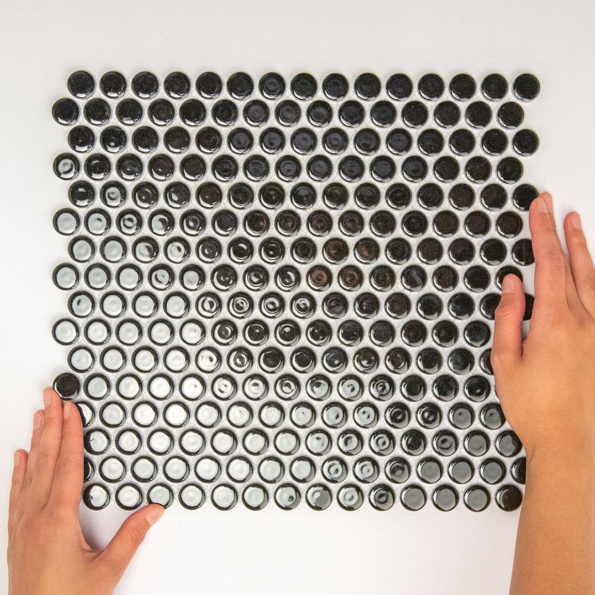 Met de Mosaic Factory Venice mozaïektegel haal je een stukje elegantie en stijl in huis. Deze wandtegel van 31.5x29.4cm, met een unieke ronde vorm en een glanzende zwarte afwerking van porselein, is een ware blikvanger in elke badkamer. De mozaïektegel combineert klassieke charme met een moderne uitstraling, waardoor je badkamer direct een luxe upgrade krijgt. Of je nu een subtiele touch of een opvallend accent wilt toevoegen, deze tegel past perfect bij elke stijl.