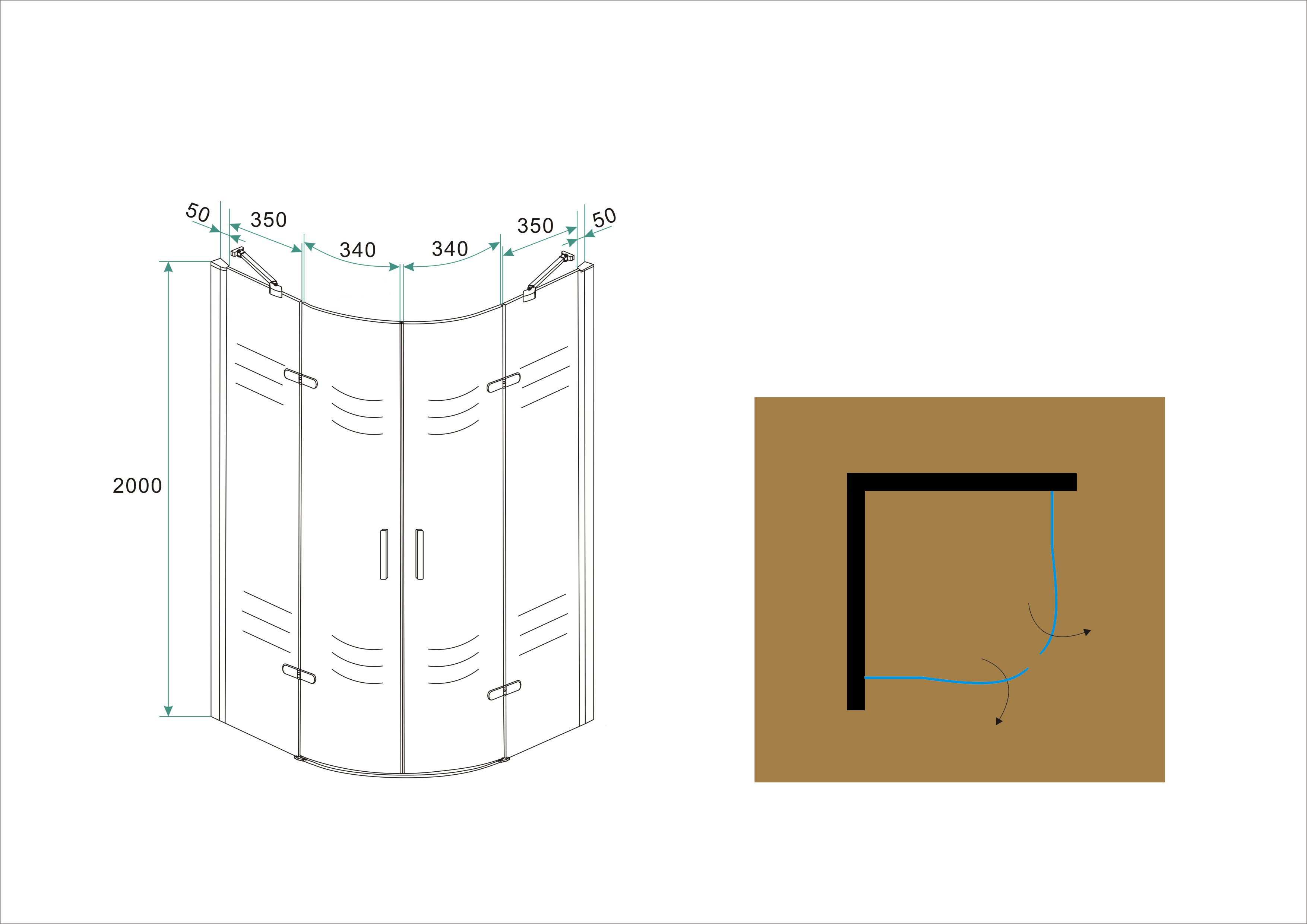 Wiesbaden Double kwartrond cabine 2 draaideuren 90x90x200 chroom 8mm NANO coating