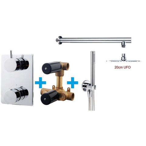 De Wiesbaden one-pack inbouwthermostaatset type 115 CHR (20cm ufo) is een prachtig ontworpen toevoeging aan elke badkamer. Met zijn elegante uitstraling en hoogwaardige afwerking, zal dit product zeker de aandacht trekken en een vleugje luxe toevoegen aan je badkamerinterieur. Deze inbouwthermostaatset combineert functionaliteit met stijl, waardoor het een essentieel element is voor een moderne badkamer.