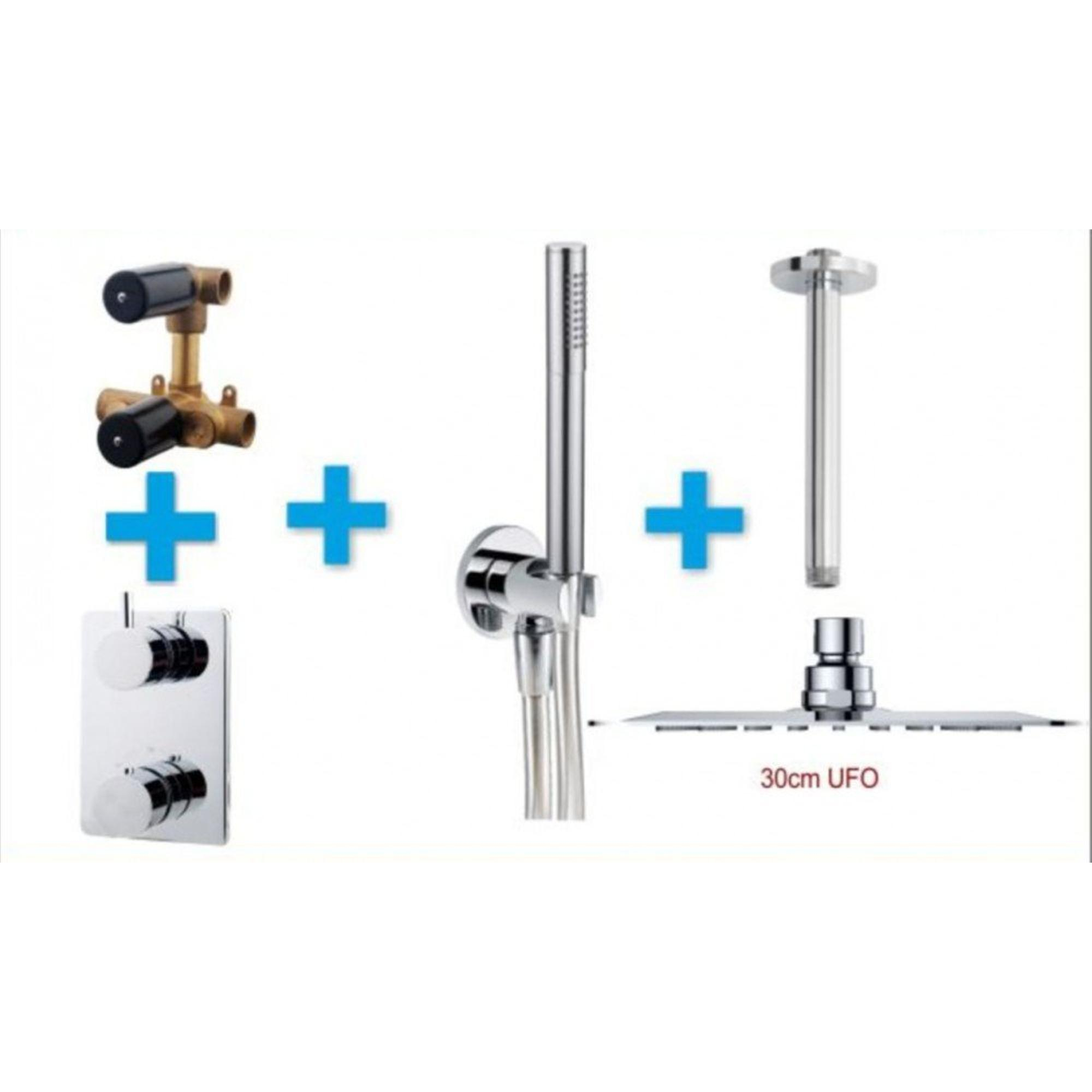 Ontdek de prachtige Wiesbaden one-pack inbouwthermostaatset type 121 CHR (30cm ufo), een perfecte combinatie van stijl en functionaliteit voor jouw badkamer. Deze inbouwthermostaatset tilt jouw douche-ervaring naar een hoger niveau met zijn elegante design en geavanceerde technologie. Met Wiesbaden geniet je van ultiem comfort en luxe in je eigen badkamer.