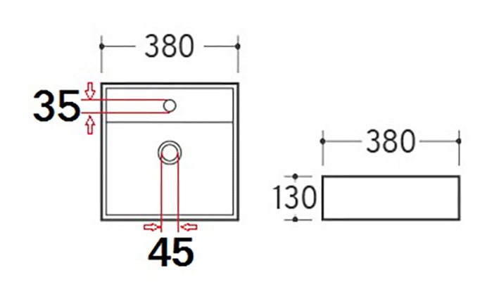 Wiesbaden Larx waskom 38,5 x 38,5 x 13 cm keramiek glans wit
