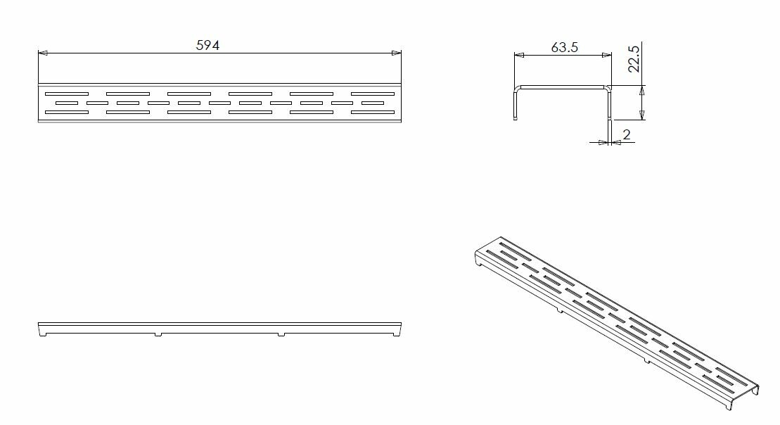 Wiesbaden rooster standaard voor 3e generatie douchegoot 60 x 7 cm RVS