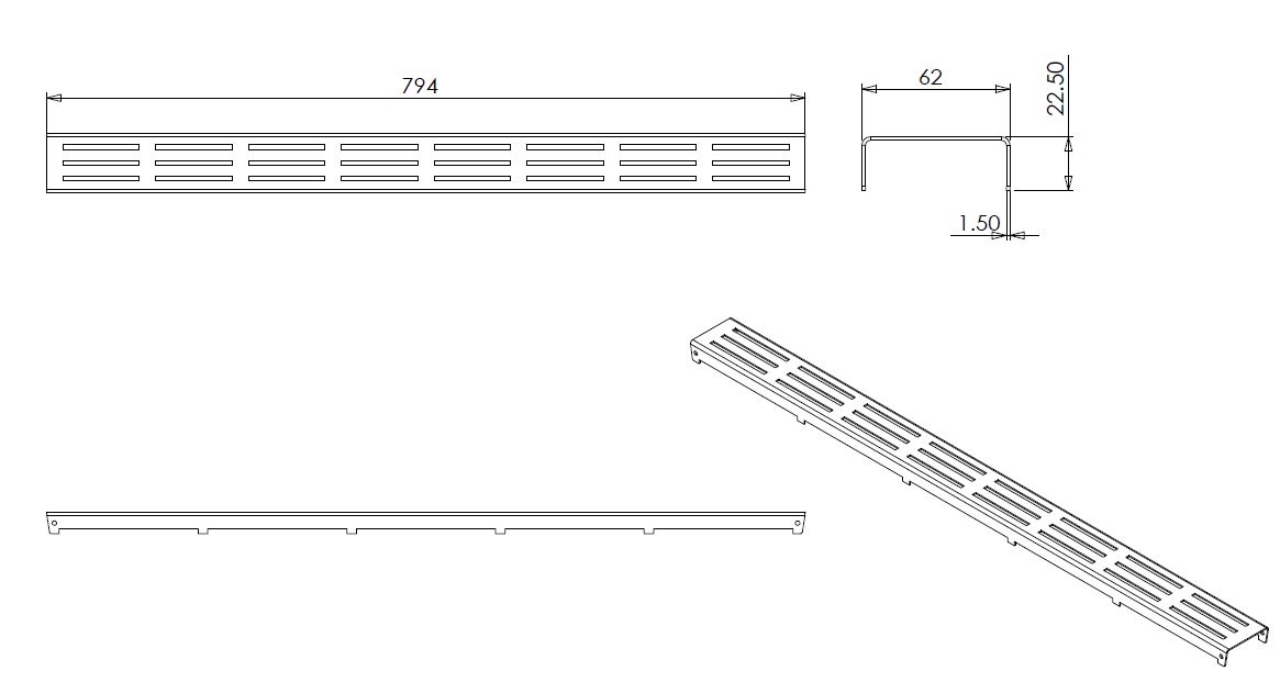 Wiesbaden rooster type 1 voor 3e generatie douchegoot 80 x 7 cm RVS