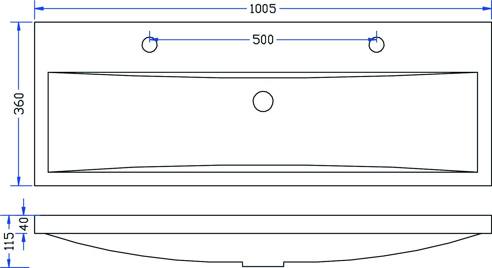 Wiesbaden Flag wastafel enkel met 2 kraangaten 100x36x4 cm kunstmarmer glans wit