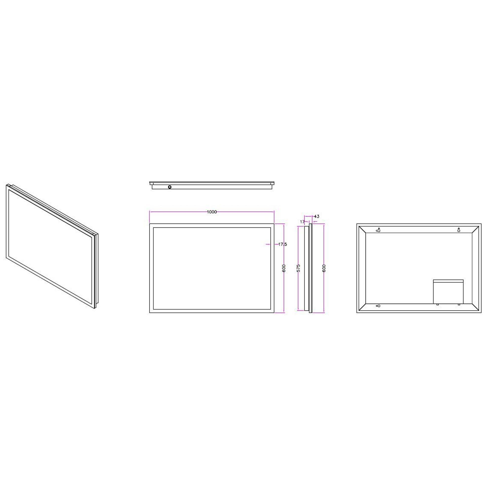 Wiesbaden Quatro spiegel rechthoek met LED, dimbaar en spiegelverwarming 100 x 60 cm