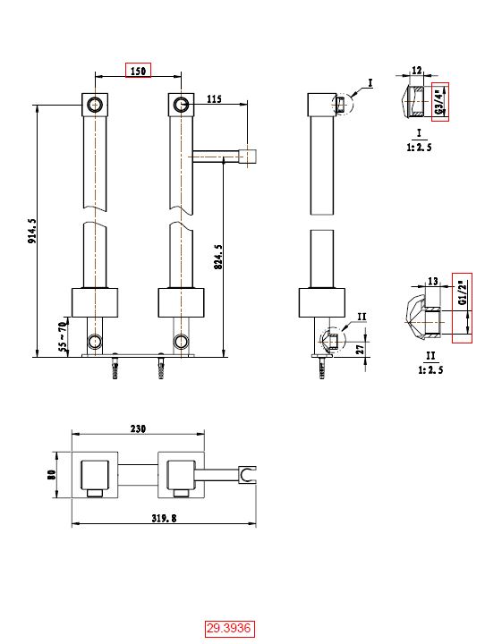Wiesbaden set universele vrijstaande badkraankoppelingen vierkant