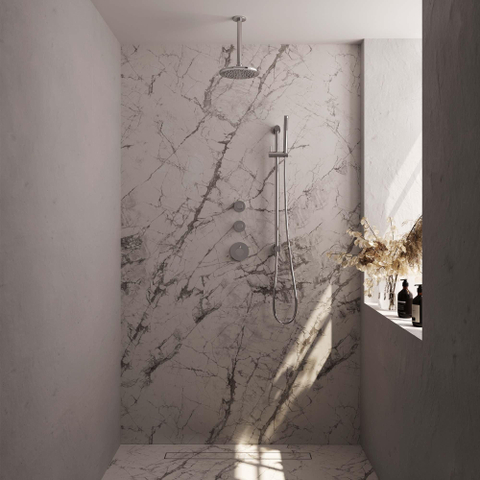 De Brauer Chrome Edition Regendoucheset inbouw combineert stijl en functionaliteit op een elegante manier. De 3 gladde knoppen zorgen voor een eenvoudige bediening, terwijl de plafondarm van 20cm een unieke uitstraling geeft aan de set. Of je nu van een verfijnde en minimalistische inrichting houdt of juist van een meer luxueuze uitstraling, deze regendoucheset voegt een stijlvol element toe aan elke badkamer.