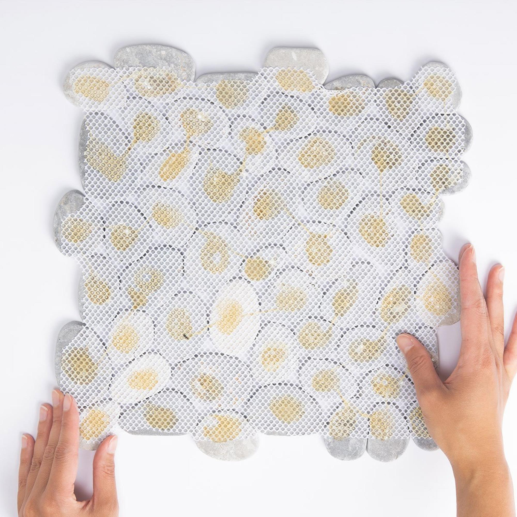 De Natural Stone mozaïektegel straalt een onmiskenbare stijl uit. De combinatie van de organische vormen en de grijze marmeren afwerking creëert een verfijnde en moderne uitstraling. Of het nu gaat om een badkamer, keuken of andere ruimte, deze tegel voegt direct een vleugje klasse toe aan het interieur.