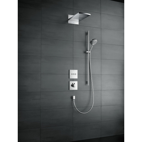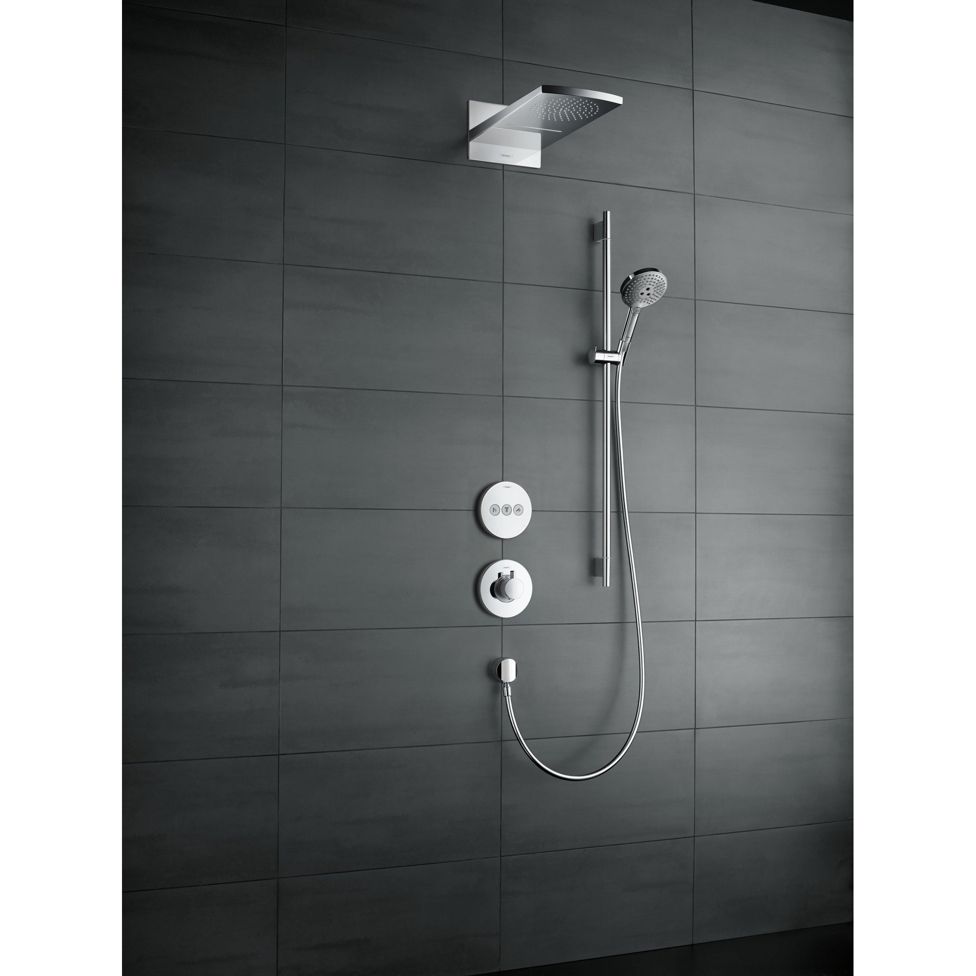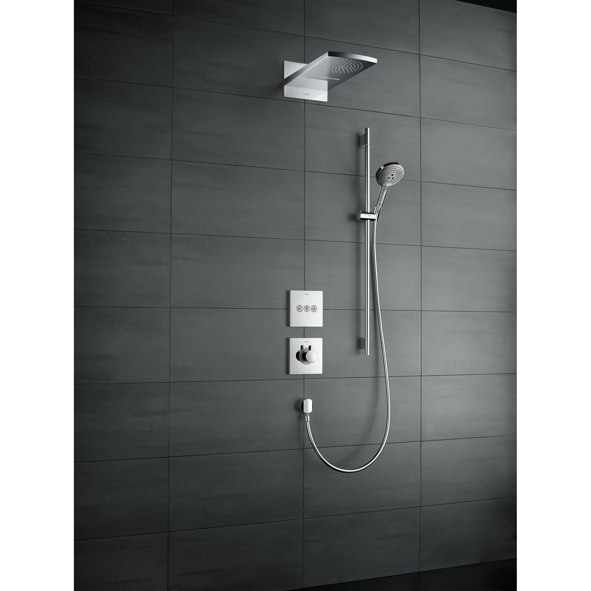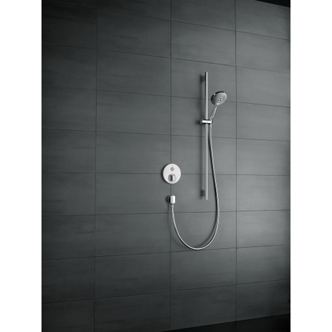 De Raindance Select S doucheset bestaat uit een hansgrohe regendouche, een 0,65 m lange doucheslang en een 1,60 m lange doucheslang. De TÜV-geteste glijstang zorgt voor veiligheid en kan bovendien als badgreep worden gebruikt. Hij kan een trekkracht van tot 200 kg weerstaan en zorgt dat men stevig staat. De 25 mm dikke, verchroomde messingstang en solide metalen wandsteunen zorgen voor een betrouwbare greep. De douchekop kan aan de stang flexibel in hoogte worden ingesteld.