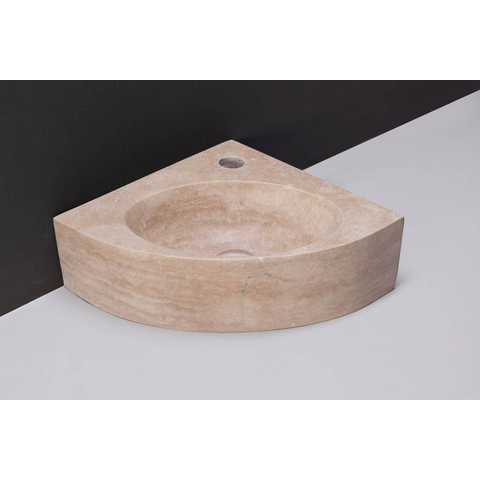 Forzalaqua Turino hoekftontein 30x30x10cm 1 kraangat zonder kraan natuursteen Travertin gezoet