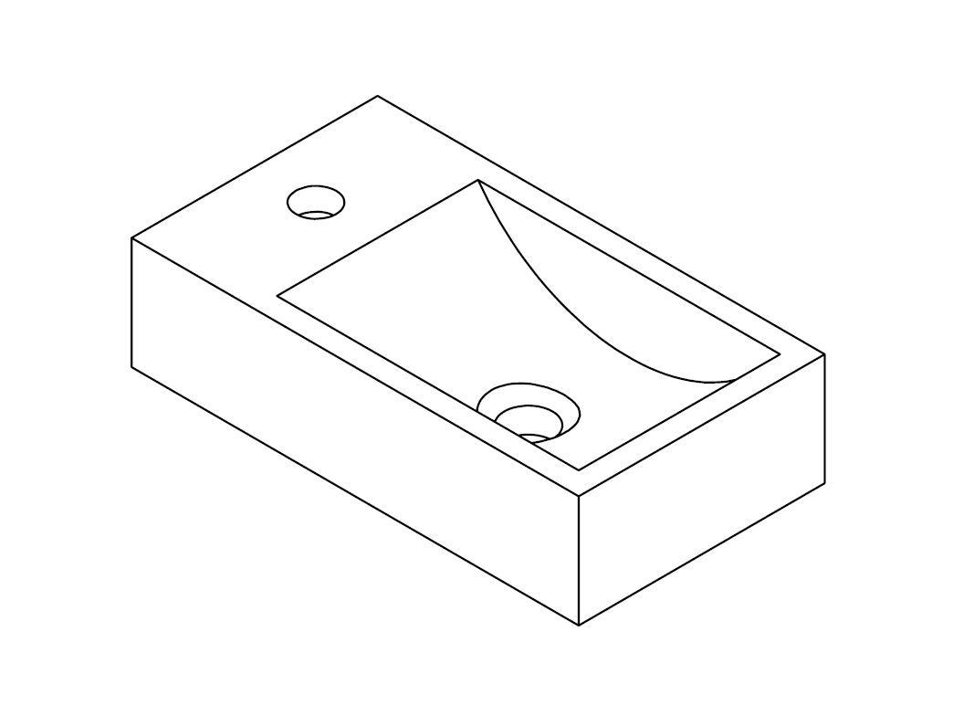 Forzalaqua Venetia fontein 40x22x10cm RECHTHOEK kraangat rechts Marmer cloudy wit