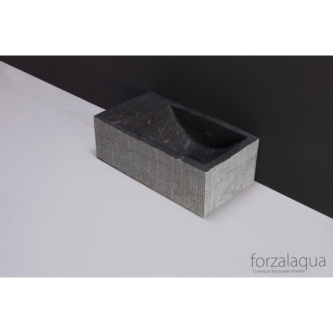 Forzalaqua Venetia Xs fonteinbak 29x16x10cm wasbak Rechts 0 kraangaten Natuursteen Blauw grijs gefrijnd
