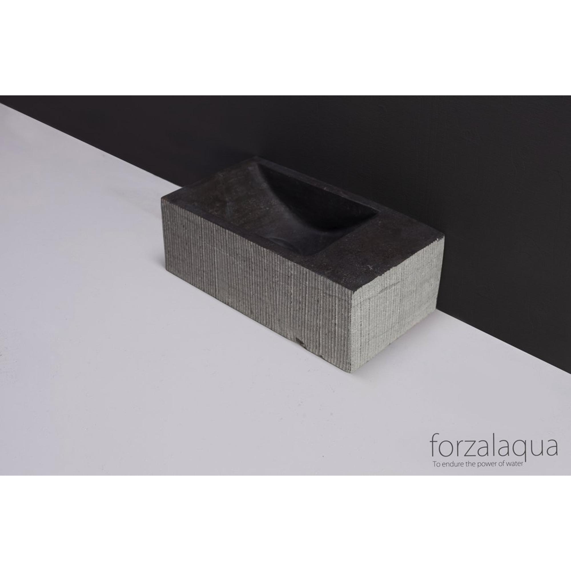 Forzalaqua Venetia Xs fonteinbak 29x16x10cm wasbak Links 1 kraangat rechts Natuursteen Blauw grijs gefrijnd