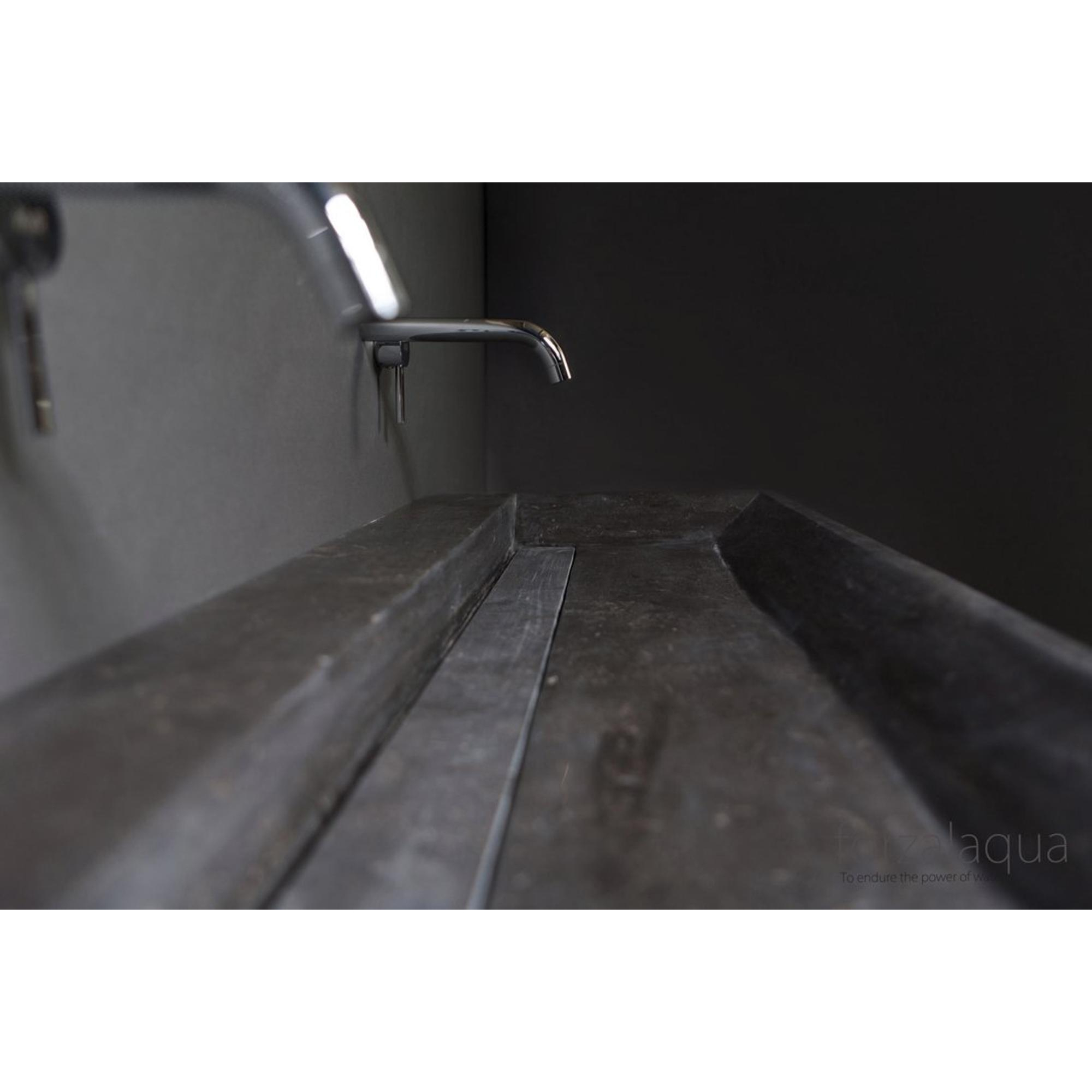Natuursteen wastafel. handgevormd uit één stuk natuursteen. Prachtig design een Exclusieve uitstraling door de natuursteen plaat die het afvoergat bedekt. Kan los aan de muur worden opgehangen worden door middel van de bij te bestellen steunen. Tevens prachtig te combineren met een van onze massief eiken meubelen. Dit speciale model is in meerdere natuursteen soorten verkrijgbaar zoals hardsteen. basalt. travertin en de cloudy marmer. De Stockholm wastafels zijn in veel maten te bestellen. van 60 tot 120cm en naar wens boren wij voor u kraangaten. Natuursteen is prachtig en geeft dat extra warme en Exclusieve gevoel in uw badkamer! Het heeft wel iets meer zorg nodig dan een standaard witte keramische wastafel. Zo is het verstandig geen water boven 60 graden Celsius te gebruiken en de wastafel te reinigen met milde schoonmaakmiddelen. Wij adviseren u dan ook onze Forzalaqua onderhoudsset aan te schaffen. Deze set bestaat uit een impregneermiddel en reiniger. Het impregneermiddel zal de oppervlakte van het natuursteen langer beschermen en de poriën dichter maken. zodat er minder snel vuil kan toetreden. Door het contact met agressieve middelen kan verkleuring van de toplaag optreden. Verwijder bijtende producten direct met water. Laat de wastafel na het gebruik ook schoon en droog achter. Wij wensen u alvast veel plezier met uw Forzalaqua product!