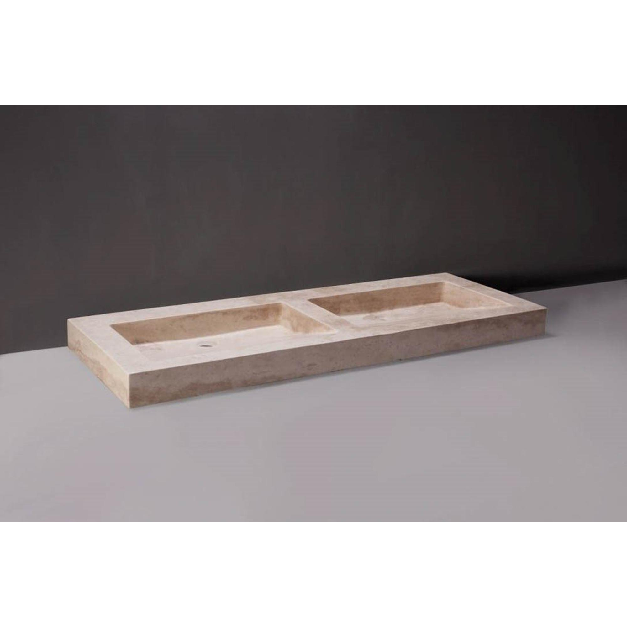 Forzalaqua Palermo Doppio wastafel 140.5x51.5x9cm Rechthoek 2 kraangaten 2 wasbakken Natuursteen Travertin gezoet