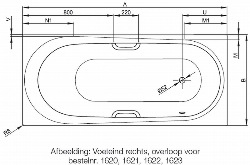 Bette Comodo bad 190x90x45cm voeteind rechts overloop voor wit