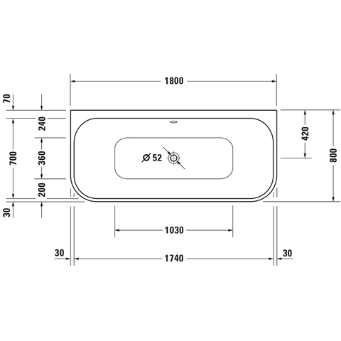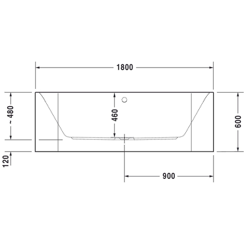 Duravit HappyD.2 bad acryl half vrijstaand 180x80x46cm met paneel wit