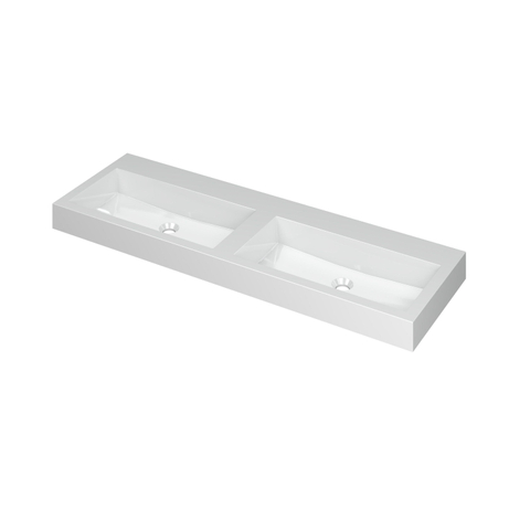 INK Momento wastafel - 140x45x9cm - 2 wasbakken - 0 kraangaten - polystone wit glans
