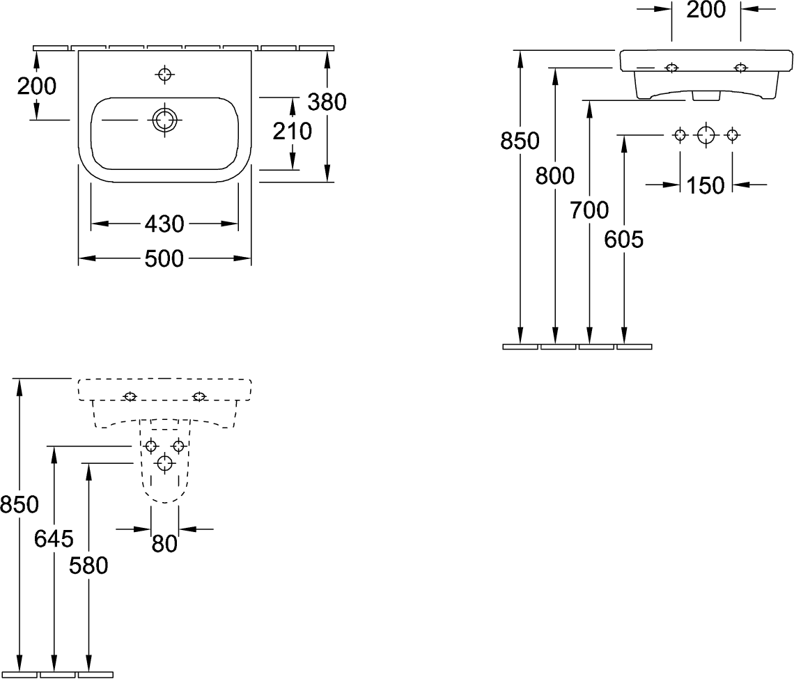 Villeroy & Boch Architectura fontein met kraangat zonder overloop 50x38cm wit