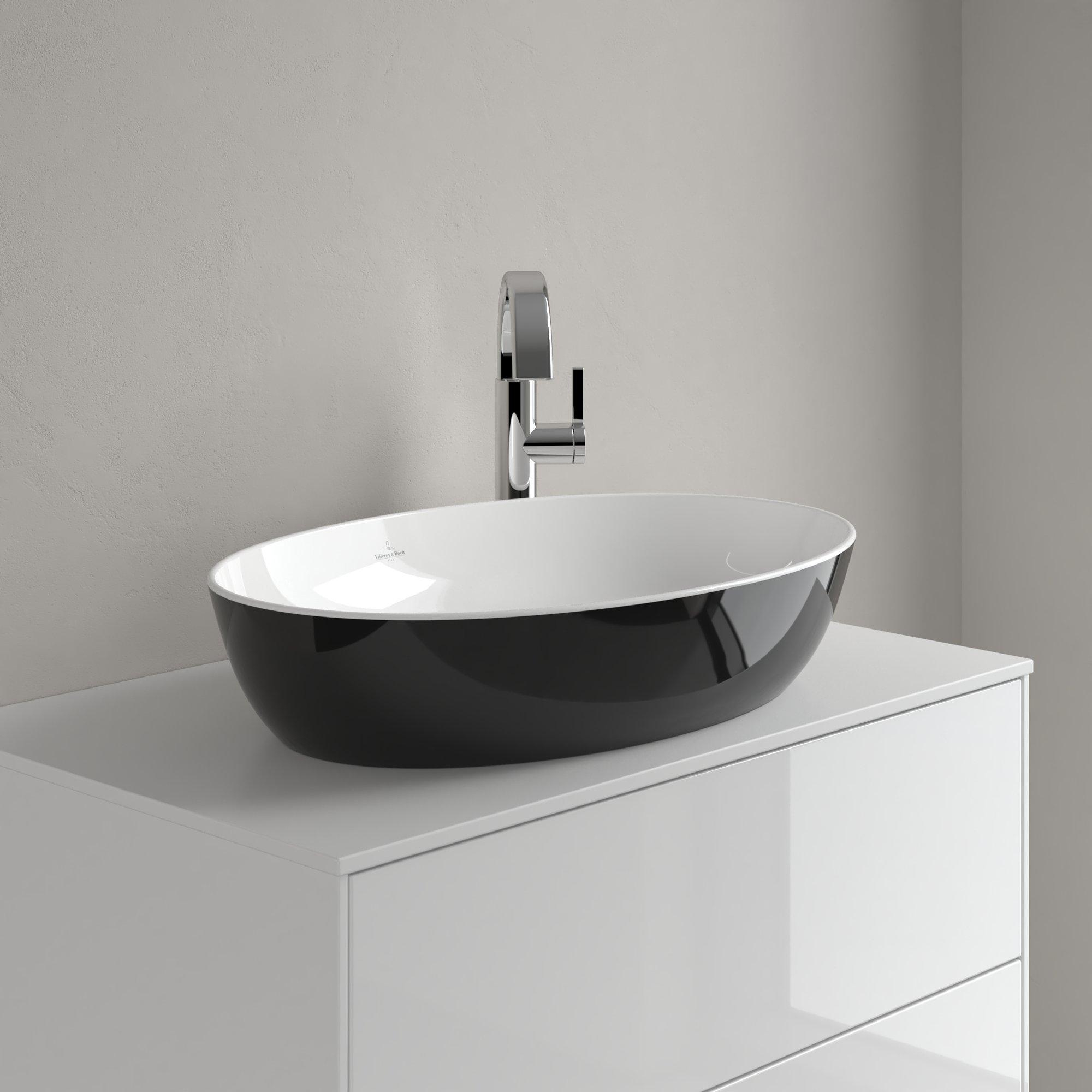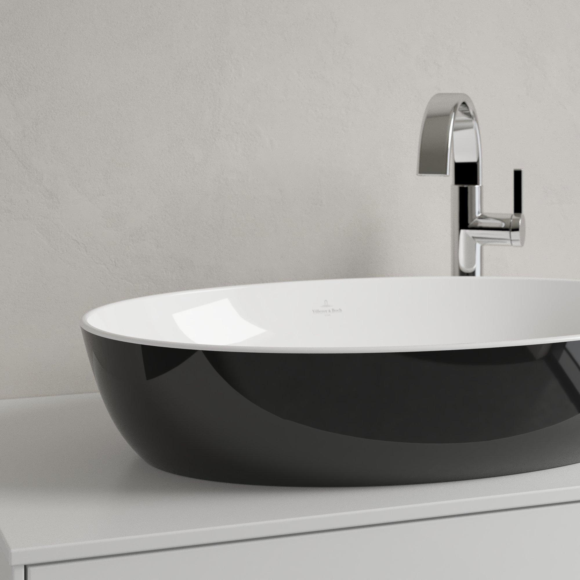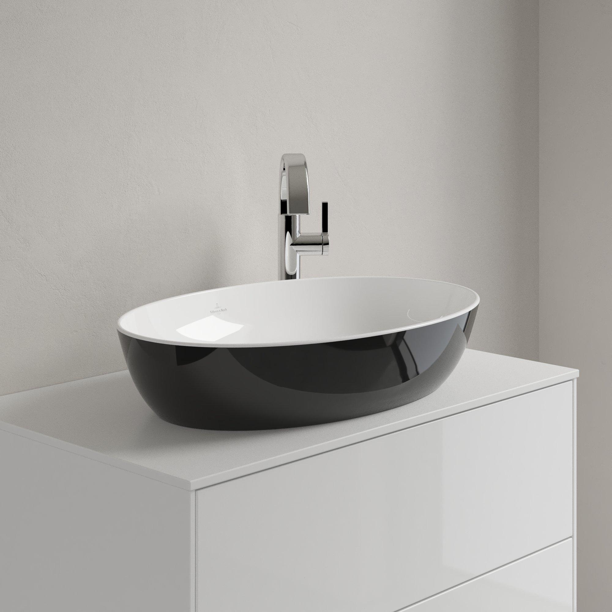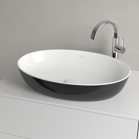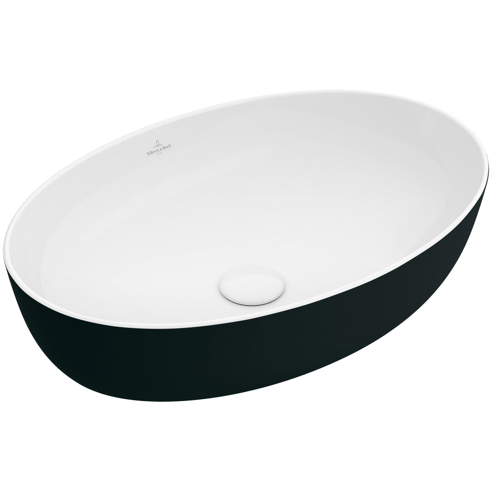 Villeroy & Boch Artis opzetwastafel ovaal 61x41x12.5cm zonder kraangat zonder overloop coal black