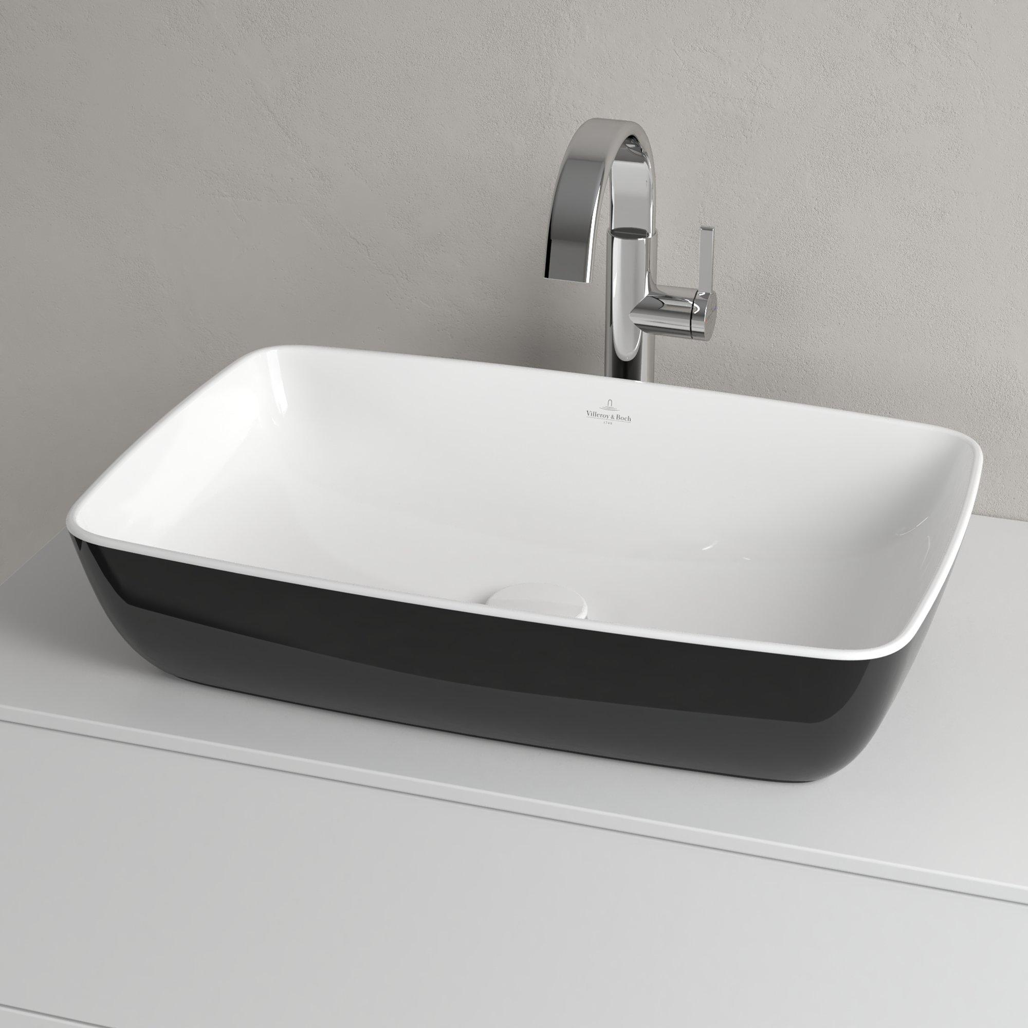 Villeroy & Boch Artis opzetwastafel rechthoekig 58x38x12.5cm zonder kraangat zonder overloop coal black