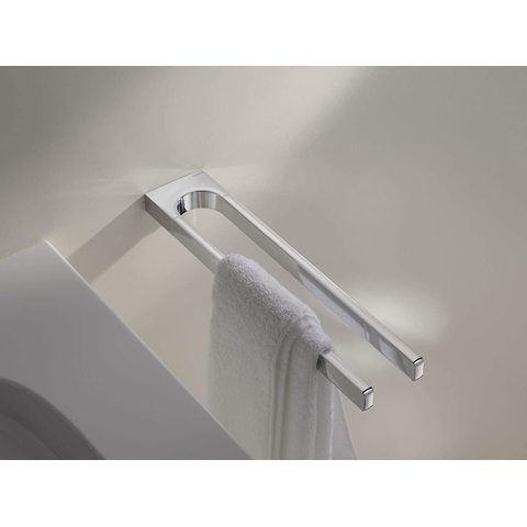 - Hoogglans verchroomde handdoekhouder in esthetisch design, met licht afgeronde randen.