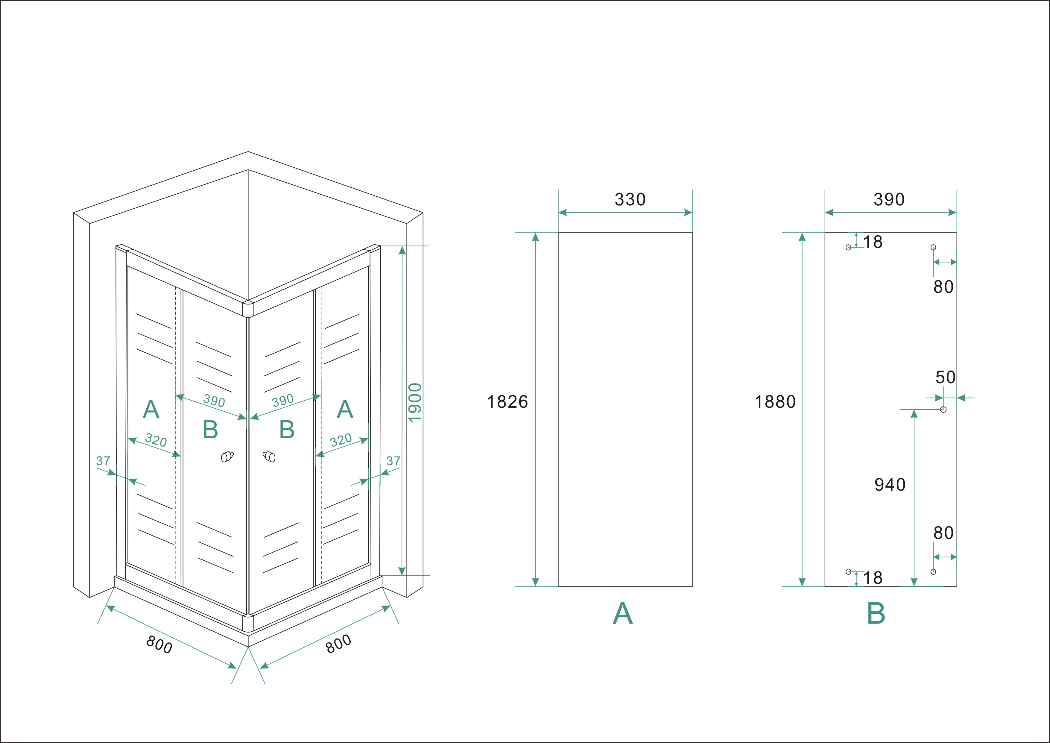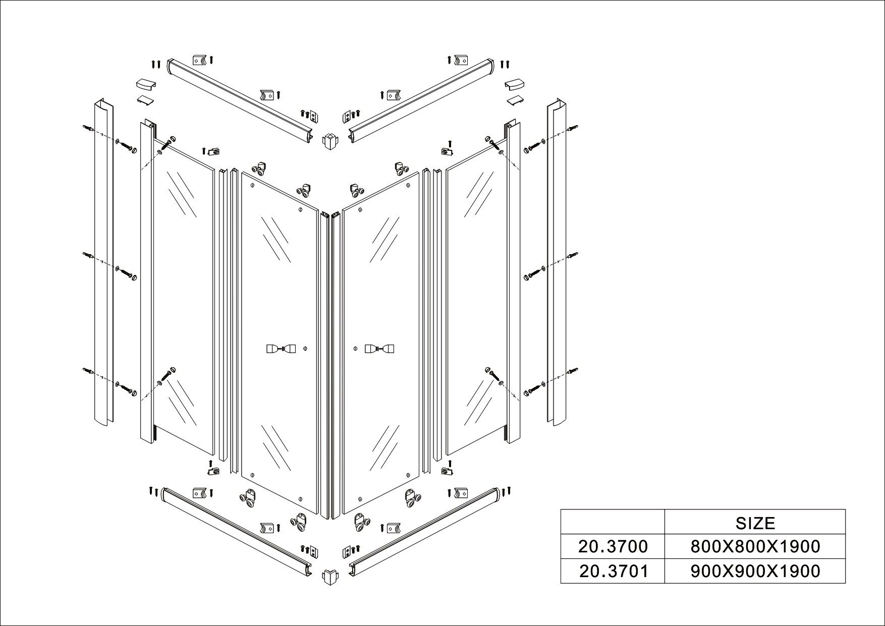 Xellanz Eco hoekinstap cabine met 2 schuifdeuren 800 x 800 x 1900 x 5 mm helder glas/chroom SW72912