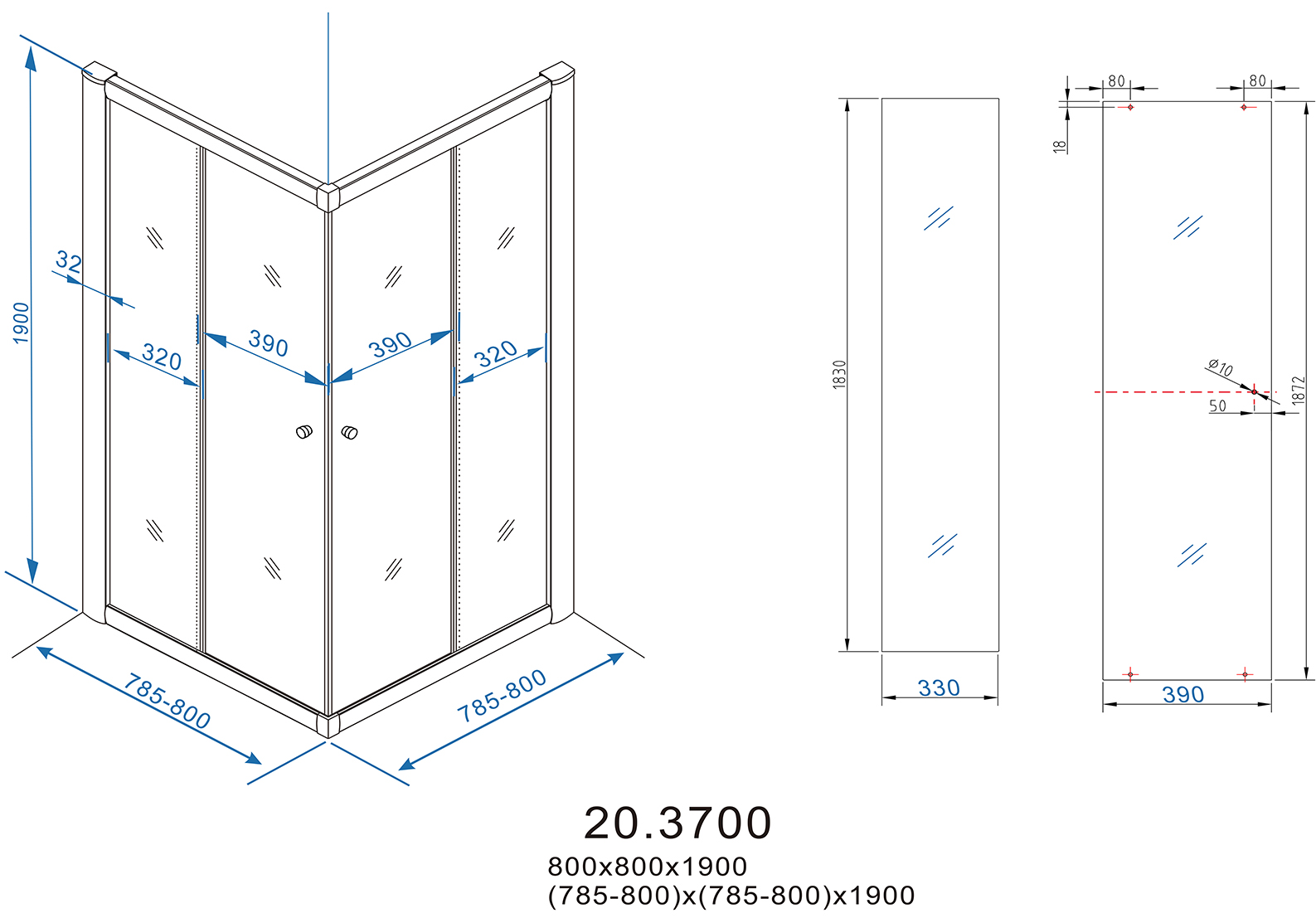 Xellanz Eco hoekinstap cabine met 2 schuifdeuren 800 x 800 x 1900 x 5 mm helder glas/chroom