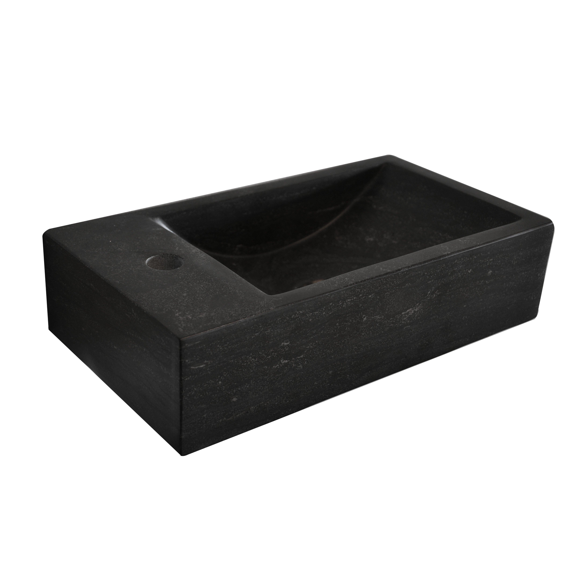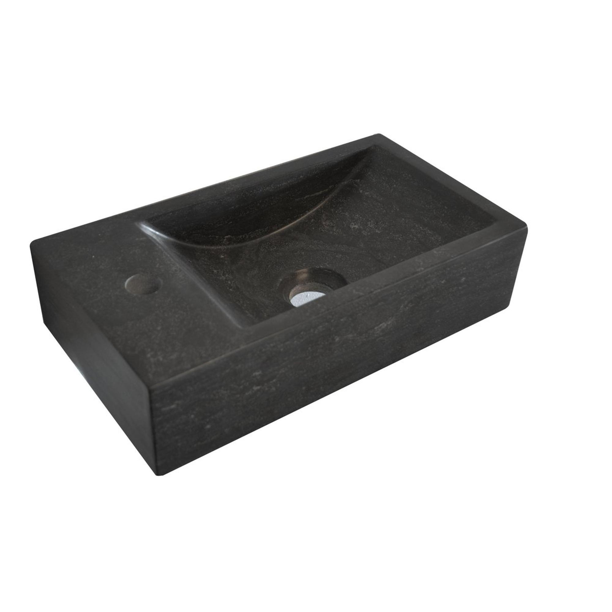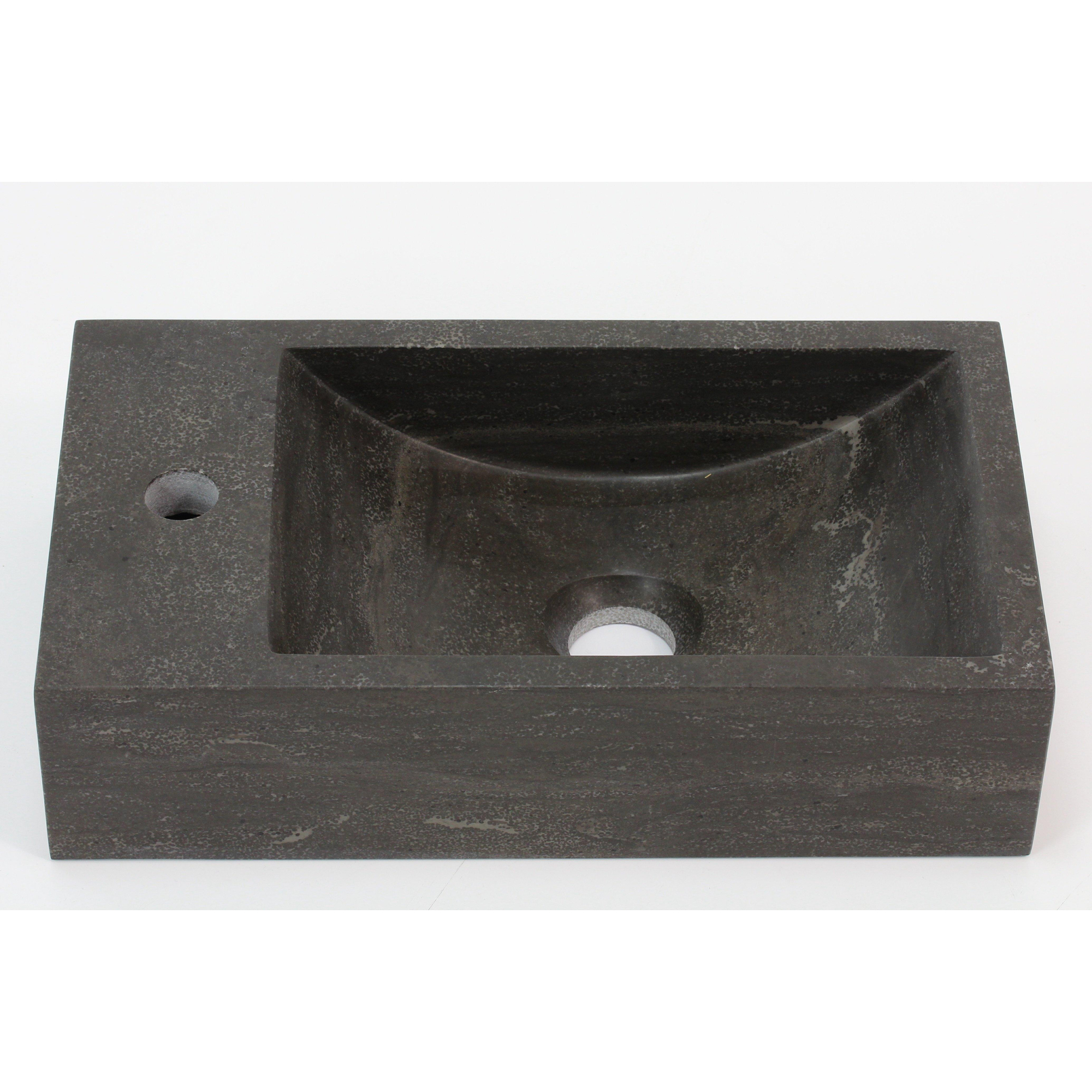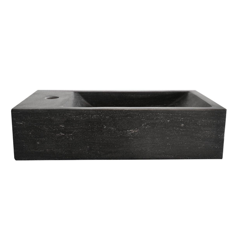 Ontwerp en AfwerkingDe fontein heeft een compacte afmeting van 40x22x10 cm, ideaal voor ruimtes met beperkte afmetingen. Het design is specifiek links georiënteerd voor een passende plaatsing en gebruiksgemak. Een laag transparante wax beschermt het hardsteen en draagt bij aan de duurzaamheid door het te beschermen tegen dagelijkse slijtage. Belangrijk om te weten: de kraan, sifon en afvoerplug worden niet meegeleverd.