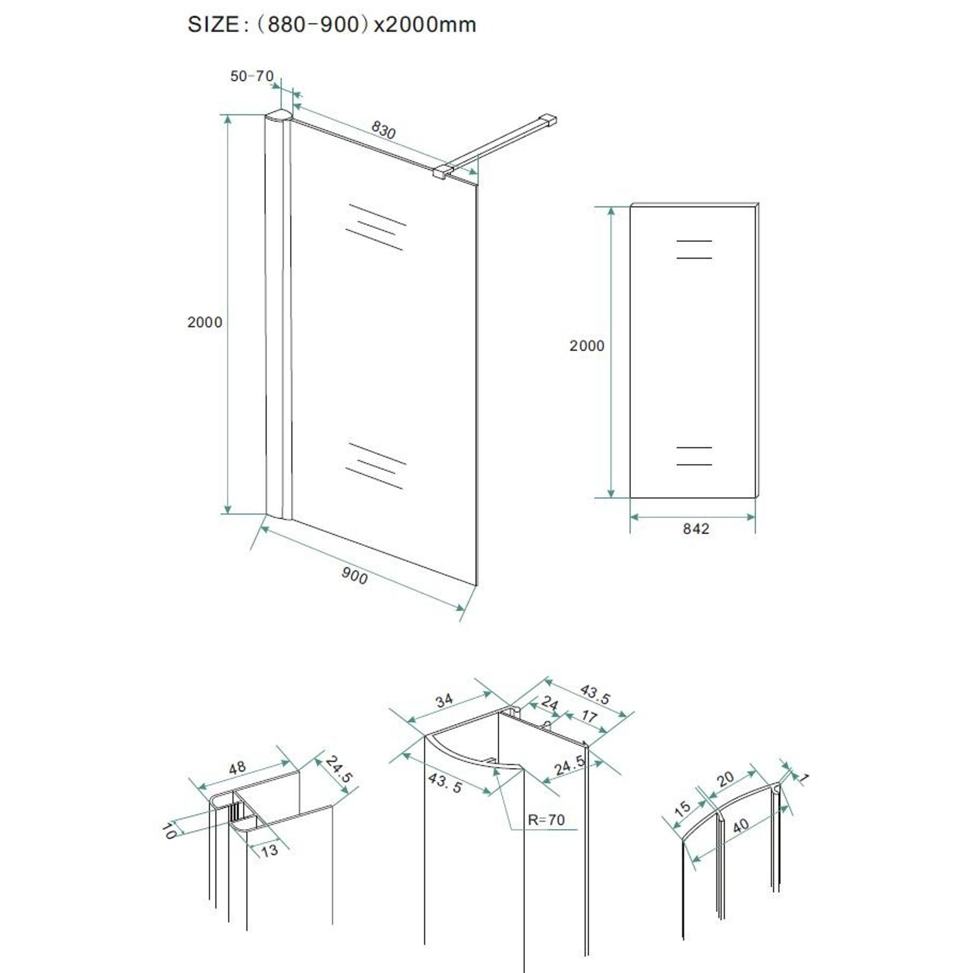 Wiesbaden Comfort inloopdouche 900 x 2000 x 10 mm nano rookglas/chroom