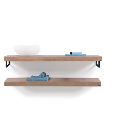 De Looox Wood collectie Duo wandplanken stralen een tijdloze elegantie uit. Het gebruik van hoogwaardige materialen zoals massief eiken en zwart mat metaal zorgt voor een luxe uitstraling. De combinatie van deze materialen creëert een harmonieus geheel dat de badkamer een luxe en verfijnde sfeer geeft. Met deze wandplanken voeg je een vleugje elegantie toe aan je badkamerinterieur.