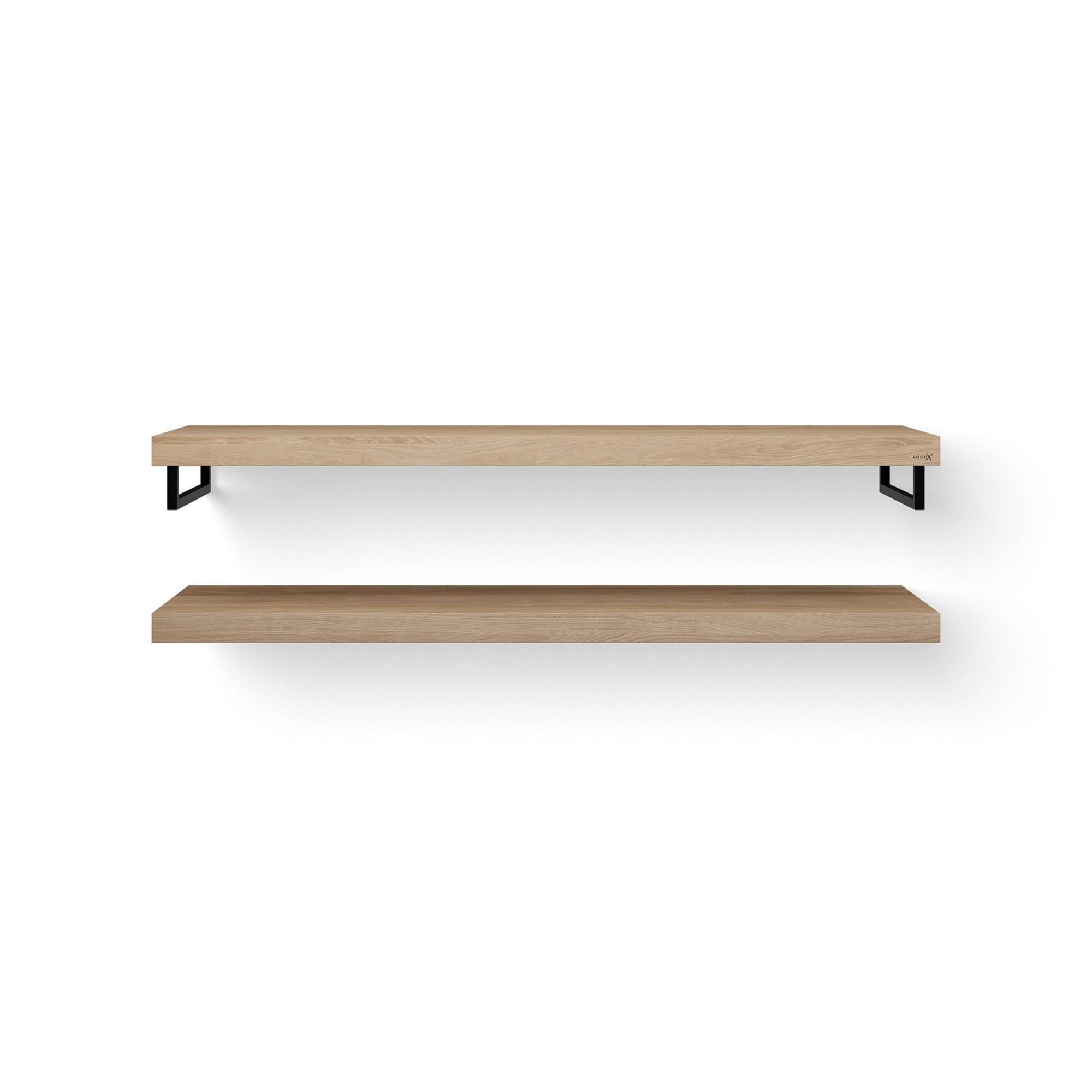 Looox Wood collection Duo wandplanken 160x46cm - 2 stuks - Met handdoekhouders zwart mat - massief eiken Old grey