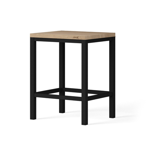 Uiteraard komt de houten kruk ook in andere woonruimtes perfect tot zijn recht. Het frame is uitgevoerd in matzwart of geborsteld rvs.