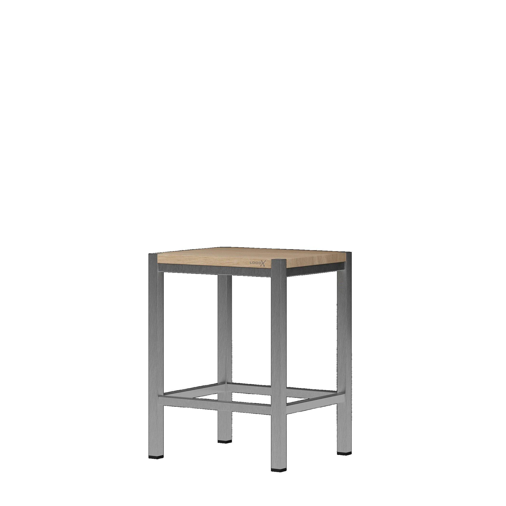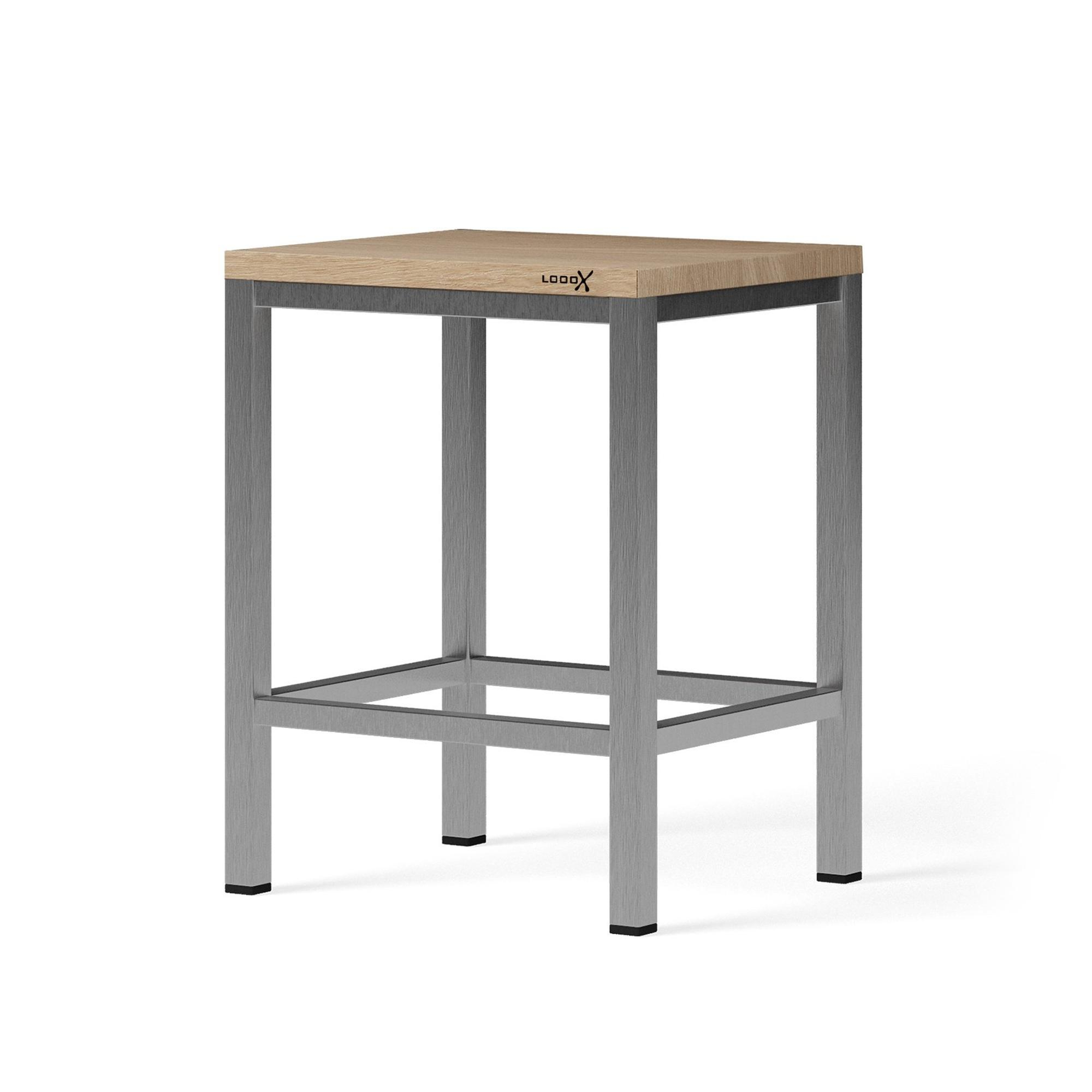 Looox Wood collection douche stool 35x30x45 met frame RVS geborsteld eiken RVS geborsteld