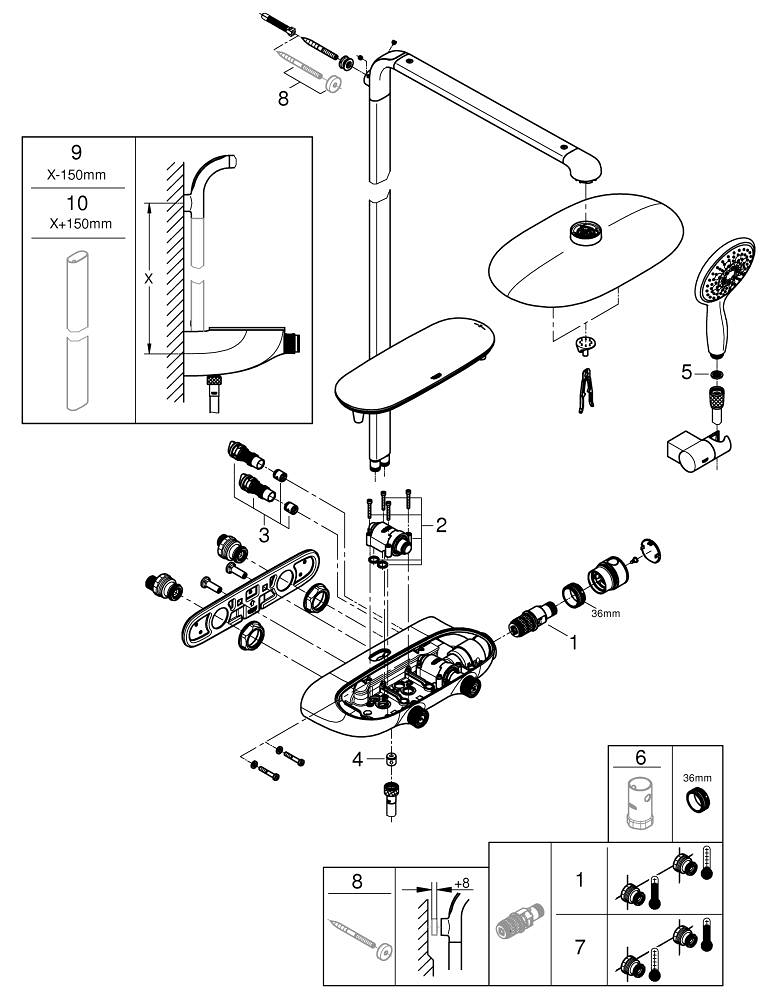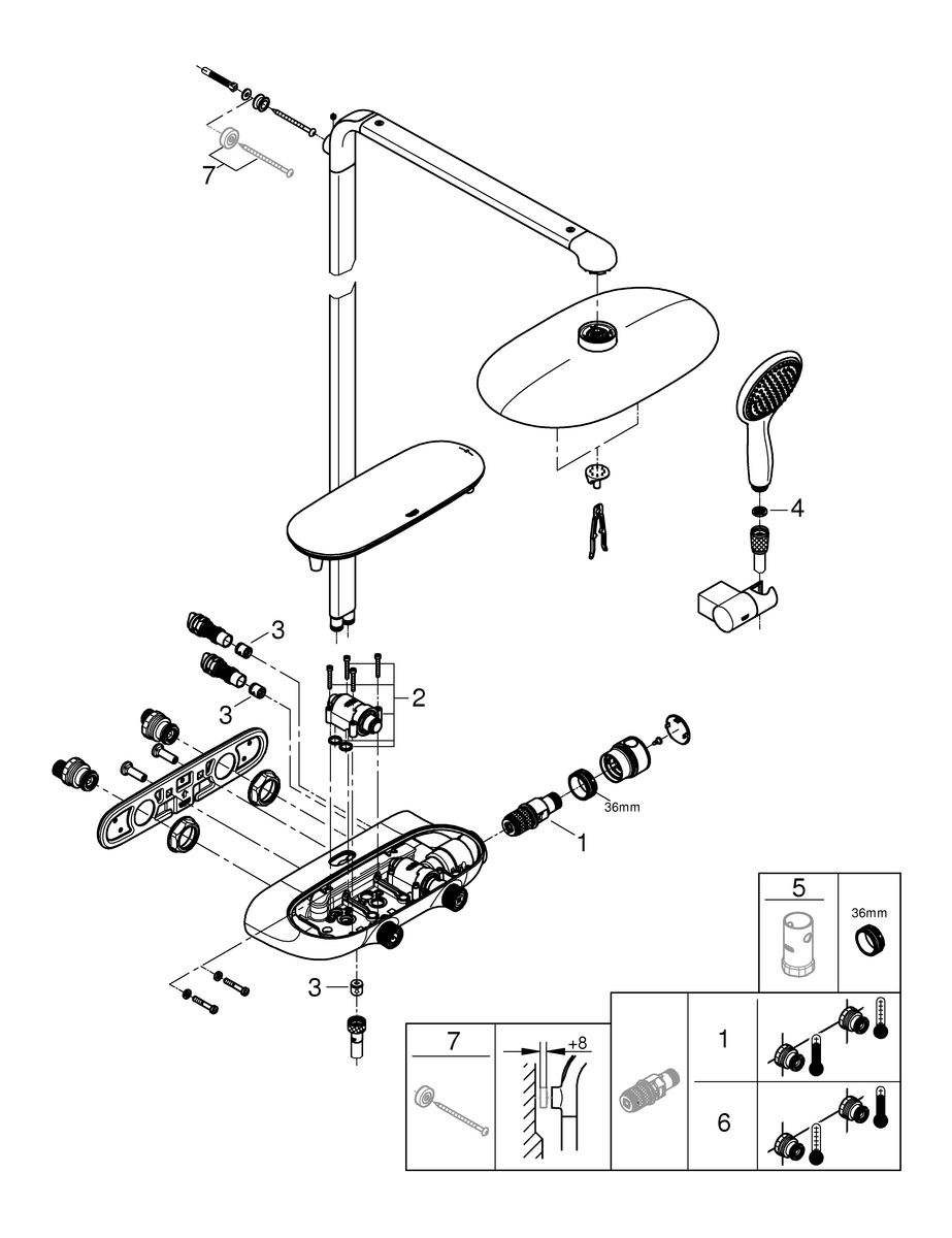 * Te bepalen bij installatie; fabrieksinstelling: GROHE PureRain