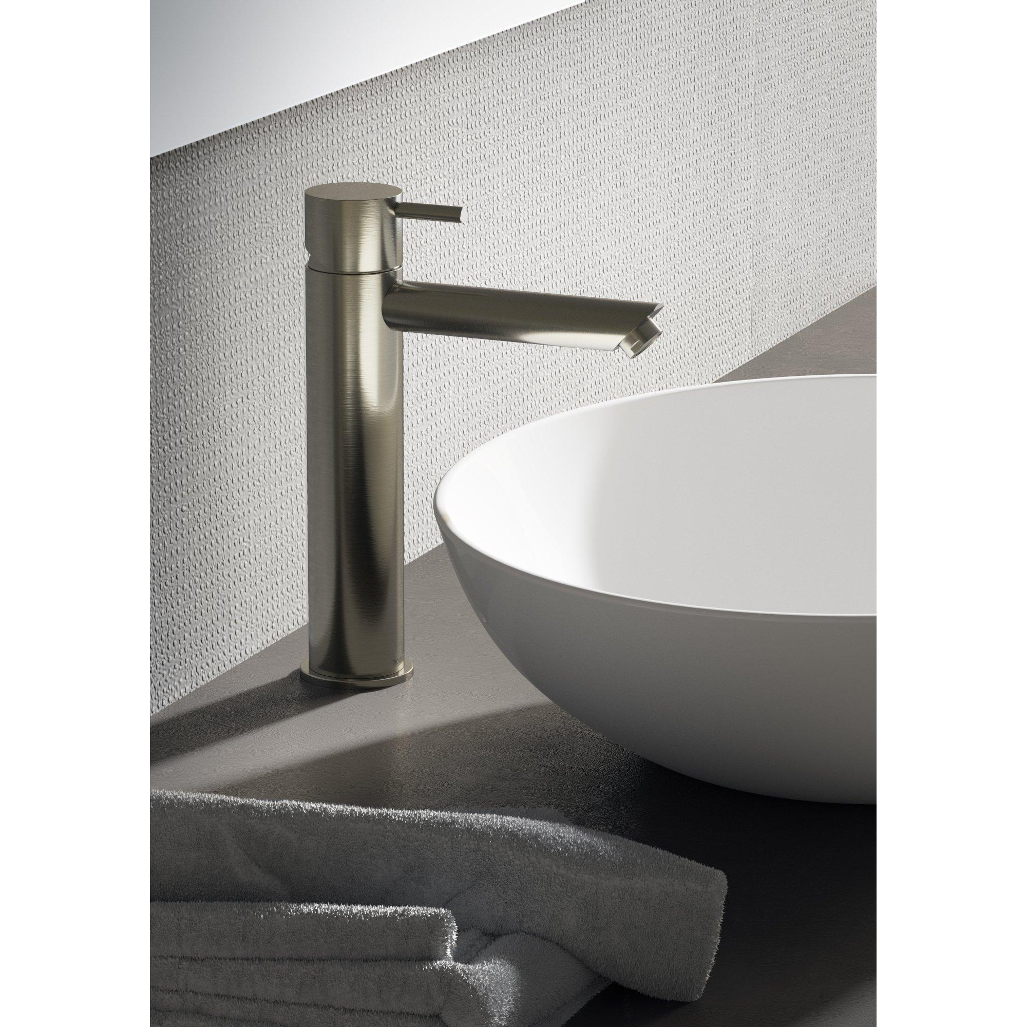 De wastafelmengkraan is voorzien van een een gebogen uitloop met perlator. De kraan is 21.6 cm hoog en kan geplaatst worden op een meubel met gezonken wasbak, maar kan ook een mooie combinatie geven met een lage waskom.