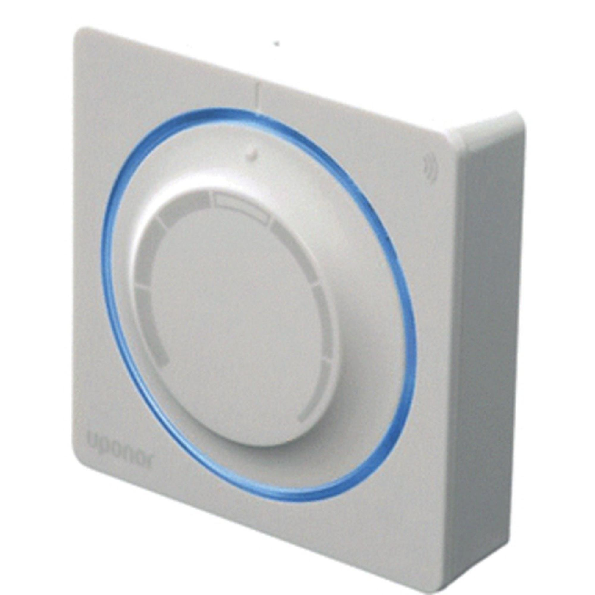 Uponor Smatrix Wave ruimtethermostaat T 165 POD Radio 26.5x80x80mm draadloos bereik max. 30m met draaiknop glanzend wit