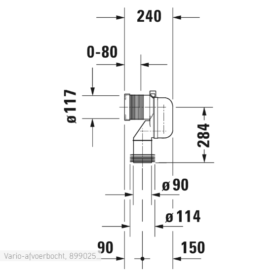 Hoogwaardige materialen voor duurzaamheid De aansluitbocht is vervaardigd uit stevige materialen en heeft een afvoerdiameter van Ø 90 mm, waardoor hij perfect geschikt is voor Duravit duoblokpotten met een verticale afvoer.