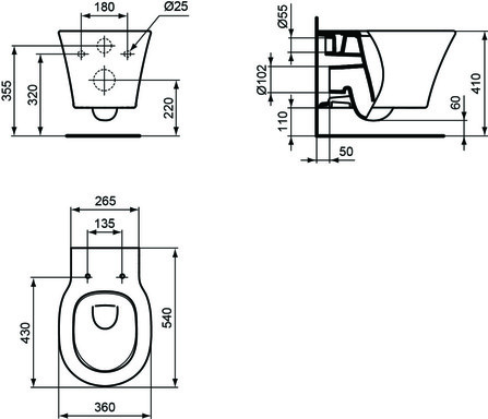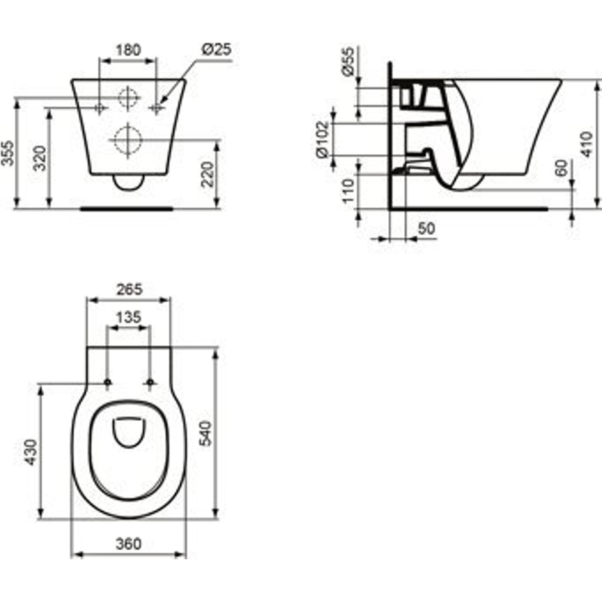Ideal Standard Connect Air wandcloset diepspoel Aquablade spoelsysteem met verdekte bevestiging 36x54cm wit