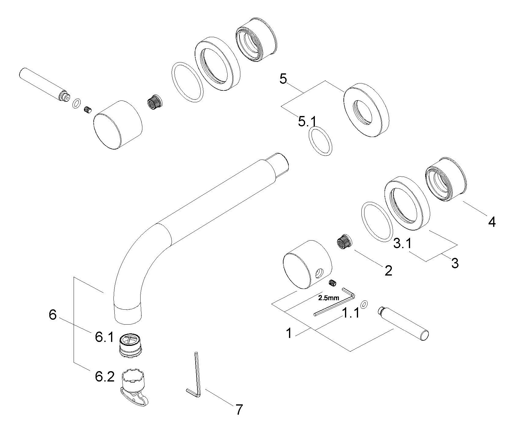 Wiesbaden Caral afbouwdeel wastafelkraan 2-knops inbouw chroom