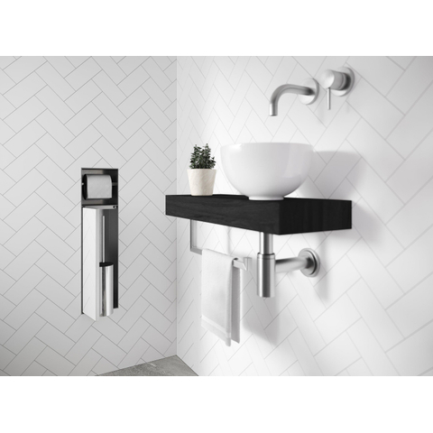 De Looox Closed closetborstelgarnituur straalt stijl en klasse uit dankzij het minimalistische design en de luxe antraciete kleur. Het strakke ontwerp met subtiele details zorgt voor een verfijnde uitstraling in de badkamer. Deze closetborstelgarnituur voegt niet alleen functionaliteit toe, maar dient ook als een decoratief element dat de ruimte verfraait en een gevoel van elegantie creëert.