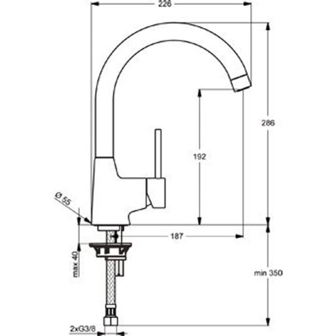Ideal Standard Idealform Plus 1 gats keukenkraan met gebogen uitloop chroom