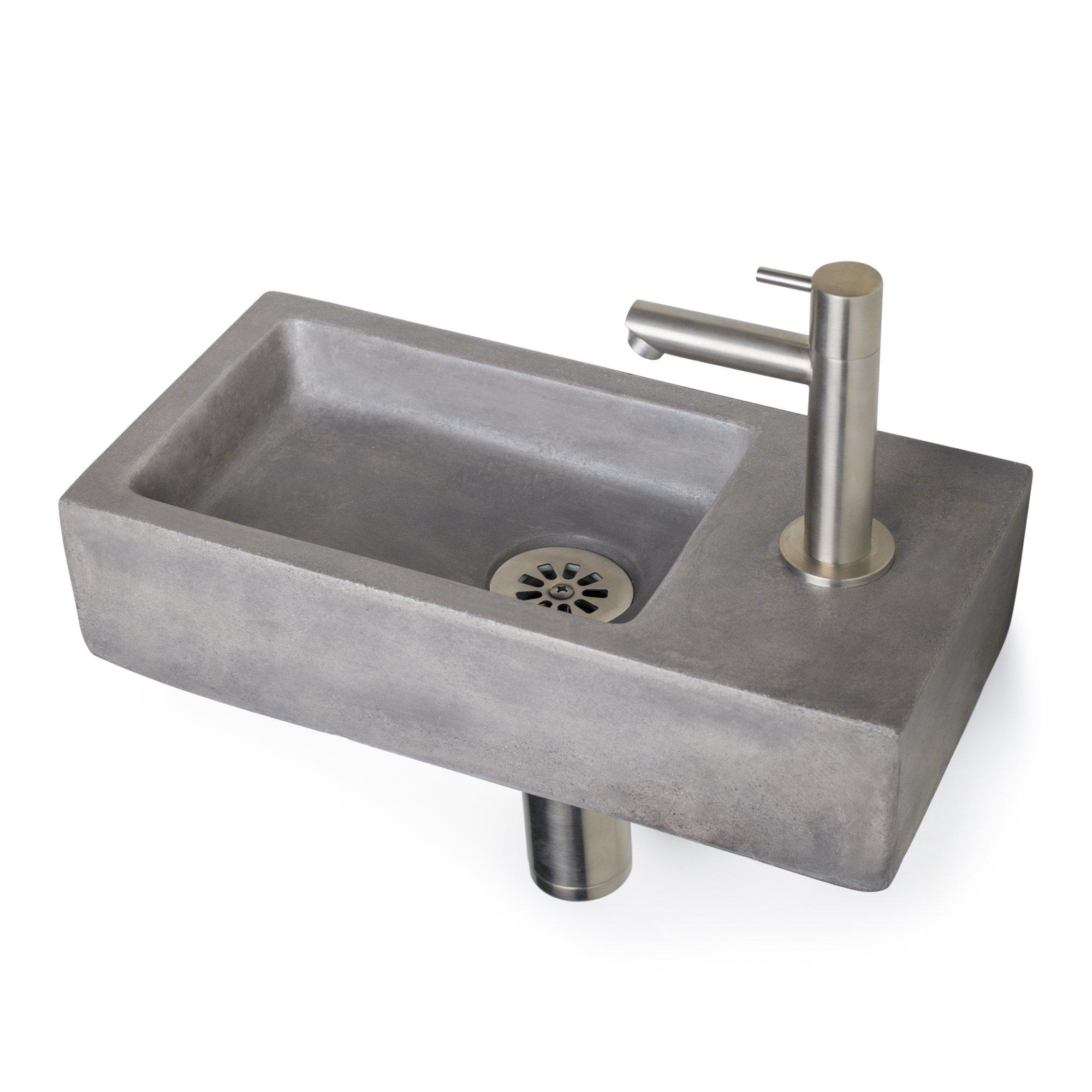 Differnz Juti fonteinset - 38.5x18.5x9cm - Rechthoek - 1 kraangat - Chroom - Beton Grijs