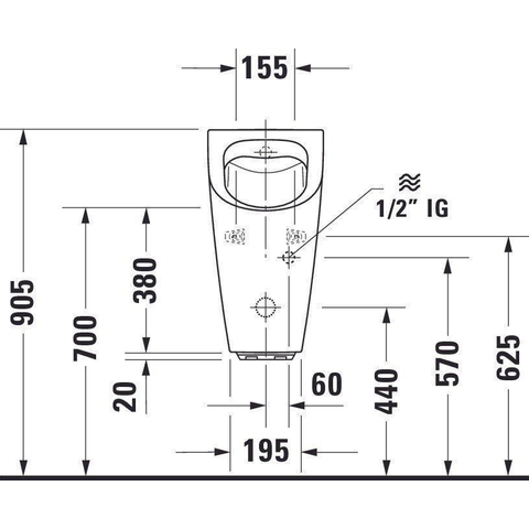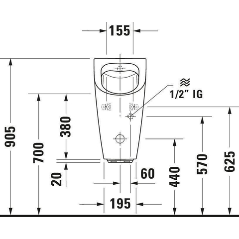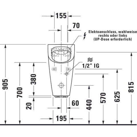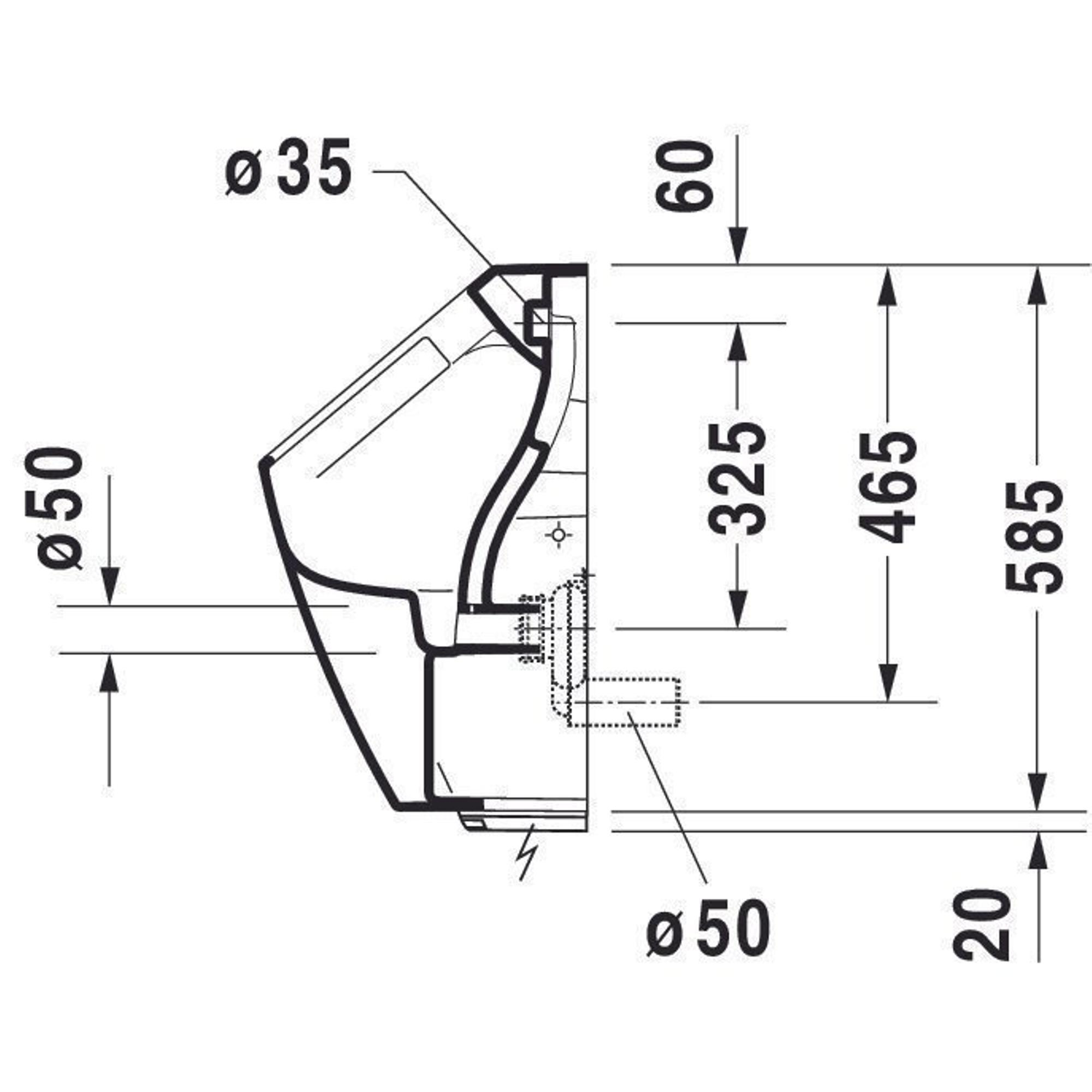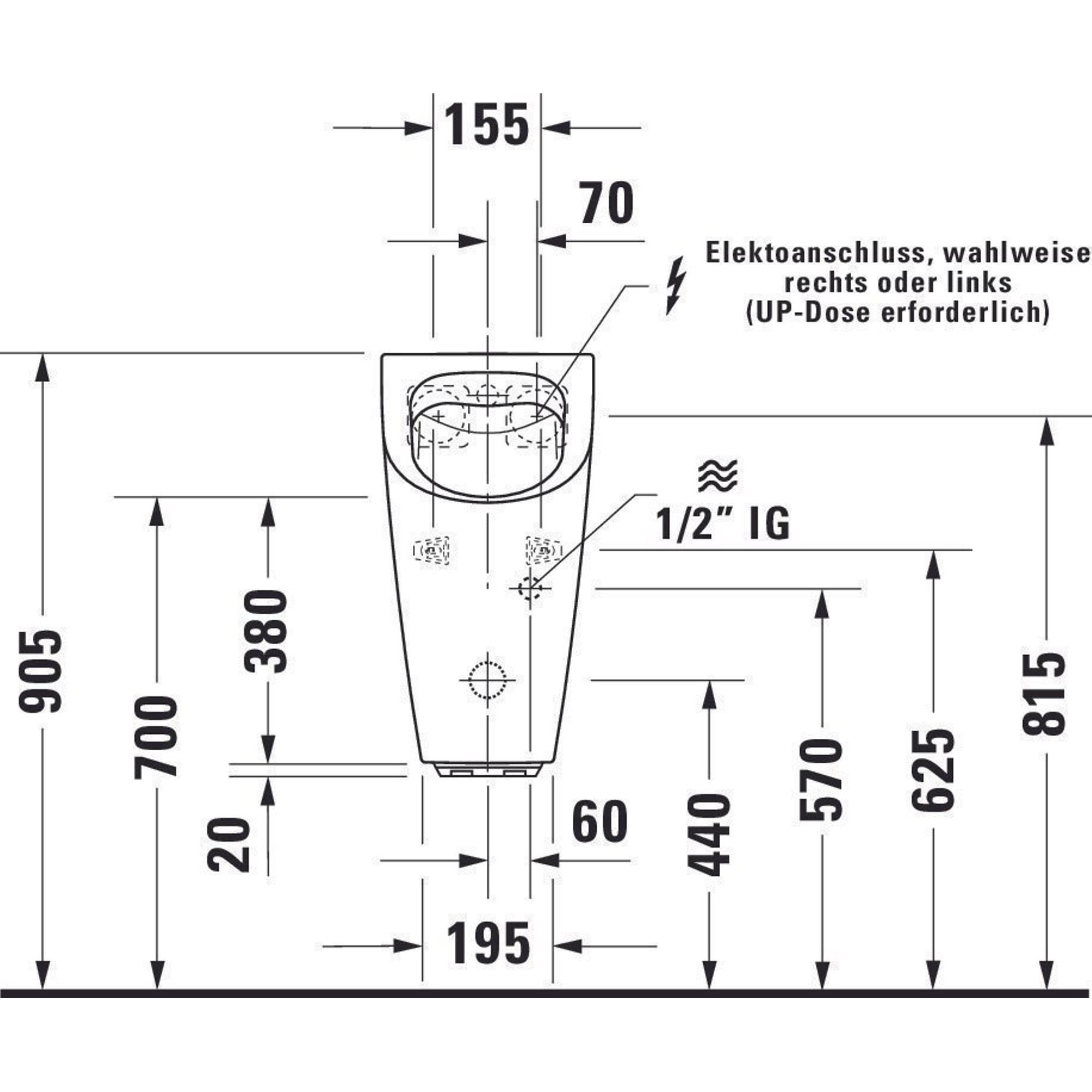 Duravit ME by Starck urinoir spoelrandloos elektronisch met netvoeding zonder vlieg 30x35cm incl. complete sturing en bevestiging met wondergliss wit